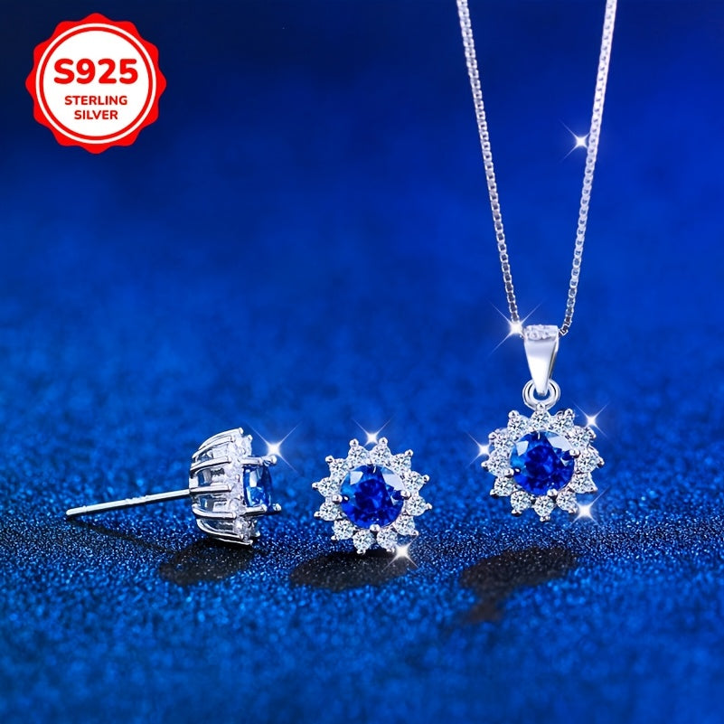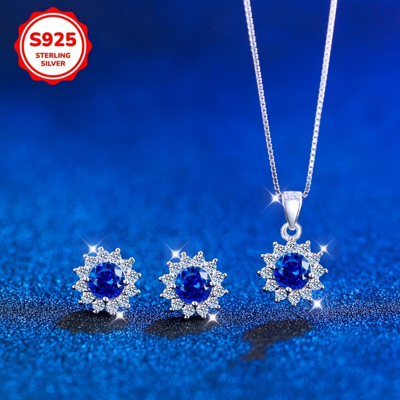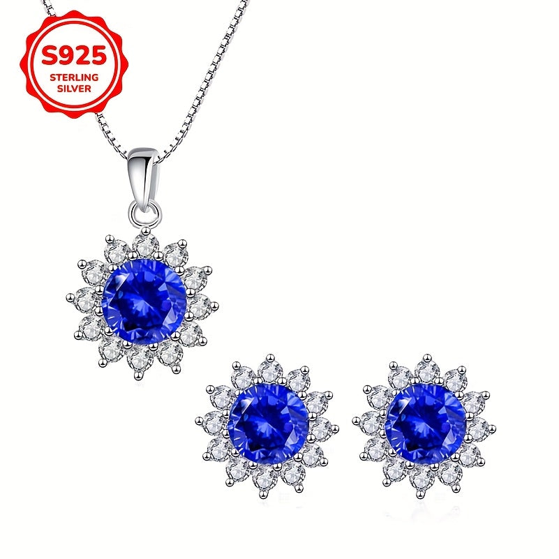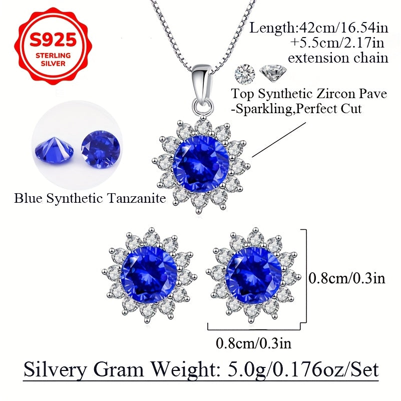 Perfect for fashionable occasions like Thanksgiving, Christmas, and birthdays, this stunning jewelry set features a unique design with synthetic tanzanite. Crafted from S925 sterling silver, this set is a stylish and elegant choice for any outfit.