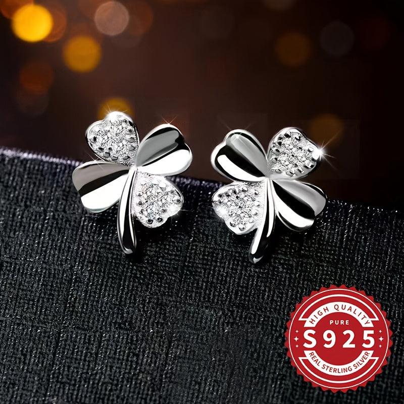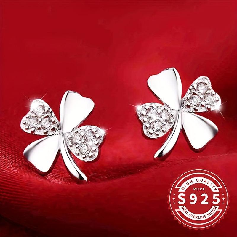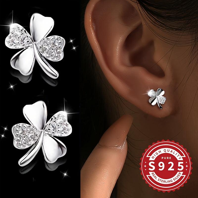 Add a touch of luck to your style with these classic four leaf clover earrings. Made of high-quality S925 sterling silver with synthetic zirconia, these earrings are perfect for daily wear, music festivals, vacations, and Valentine's Day celebrations. They are also hypoallergenic for sensitive skin.