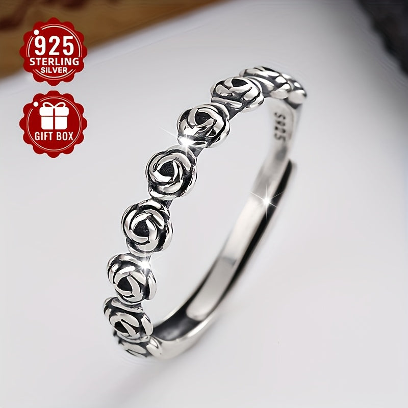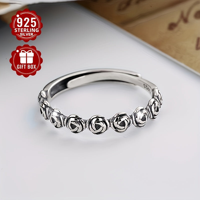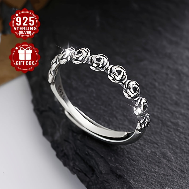 S925 Silver Rose Flower Ring - Romantic Gift for Her