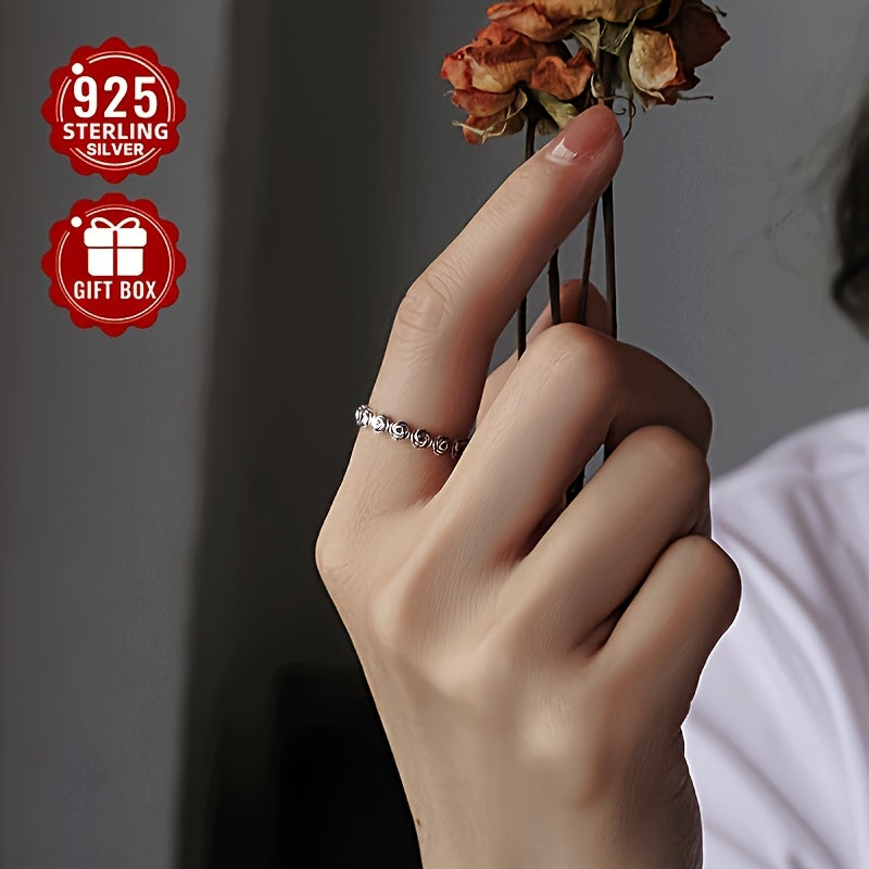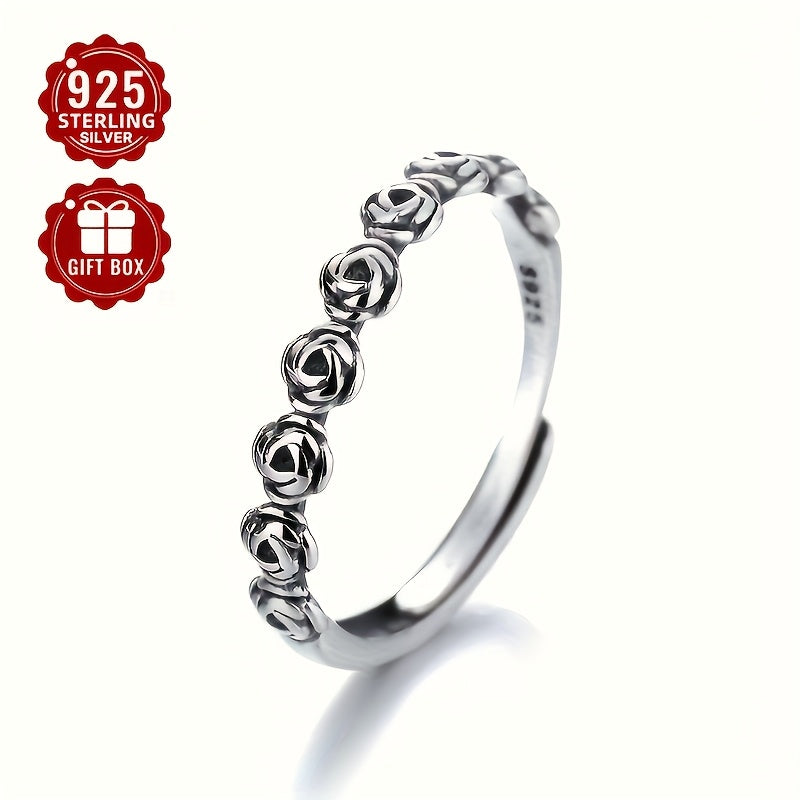 This S925 pure silver open ring features a creative and romantic rose flower design, making it a perfect gift for your girlfriend or wife. Ideal for anniversaries, Valentine's Day, or any special occasion.