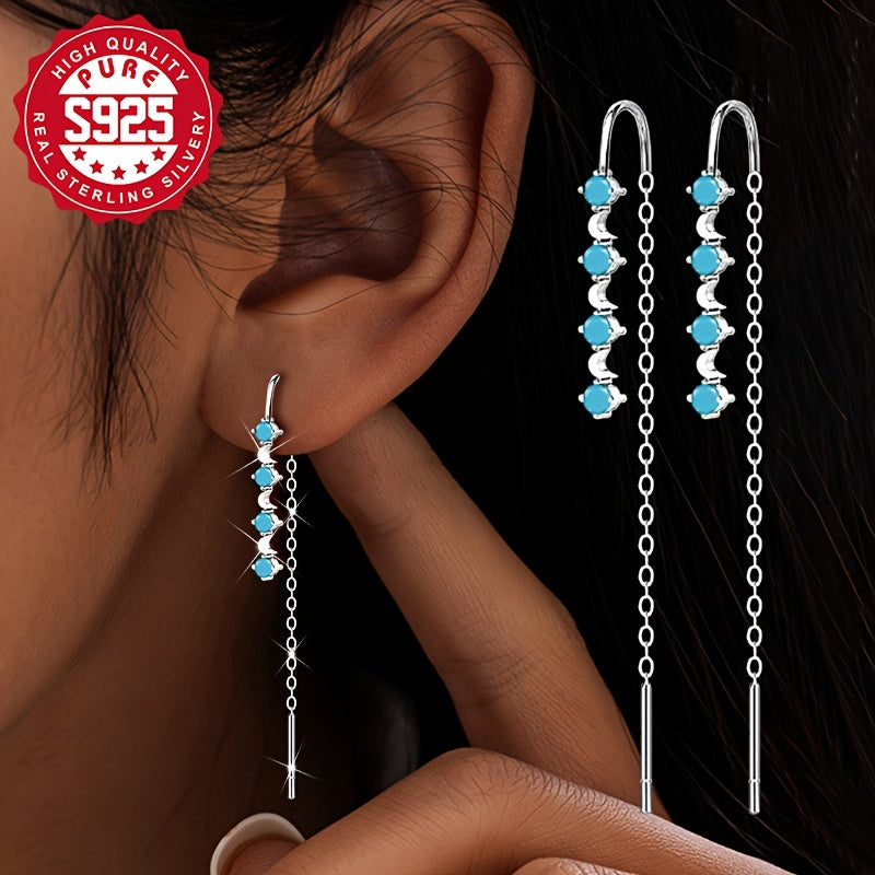 Elegant and versatile ear line featuring synthetic zirconia and turquoise, adding a touch of color and style to any outfit.