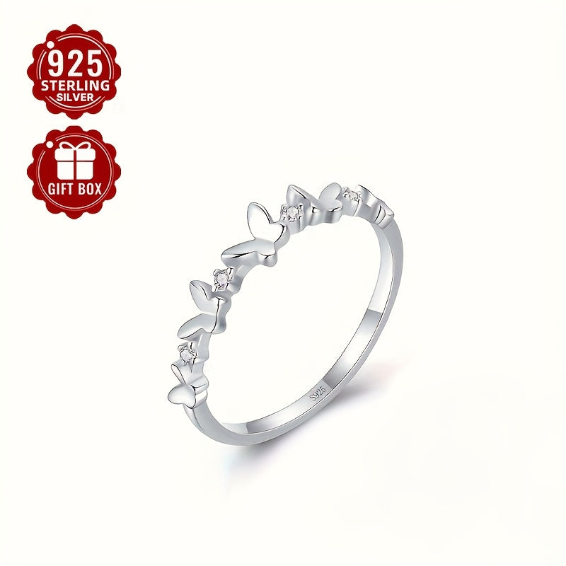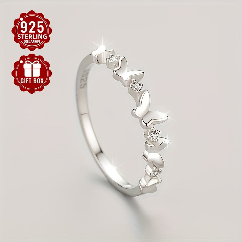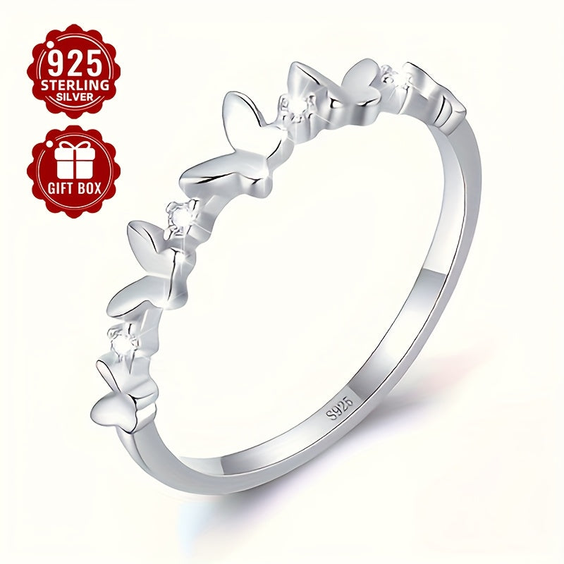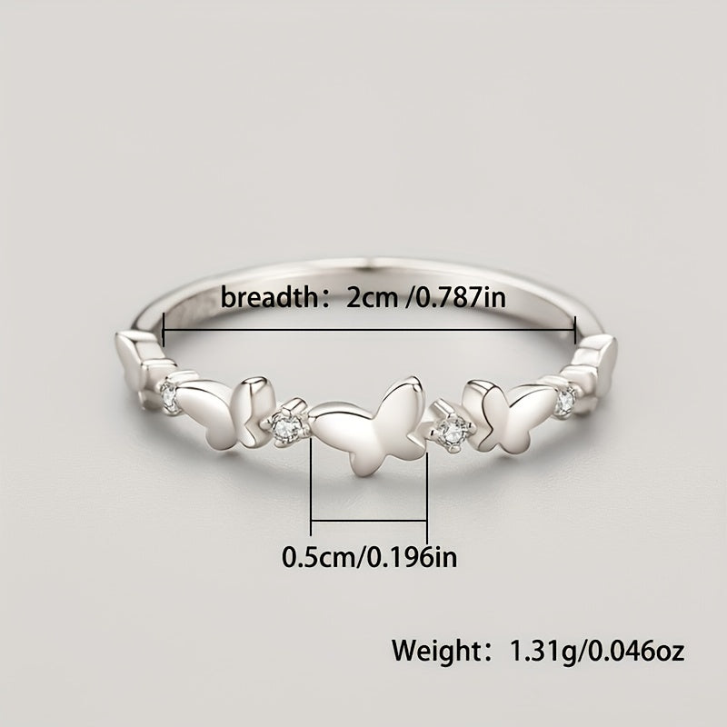 This stunning S925 pure silvery ring features an inlaid synthetic zirconia butterfly design. Perfect for daily wear, dates, parties, banquets, and graduations.