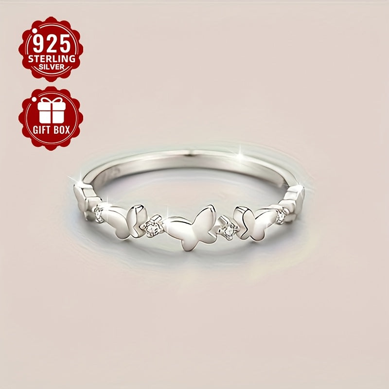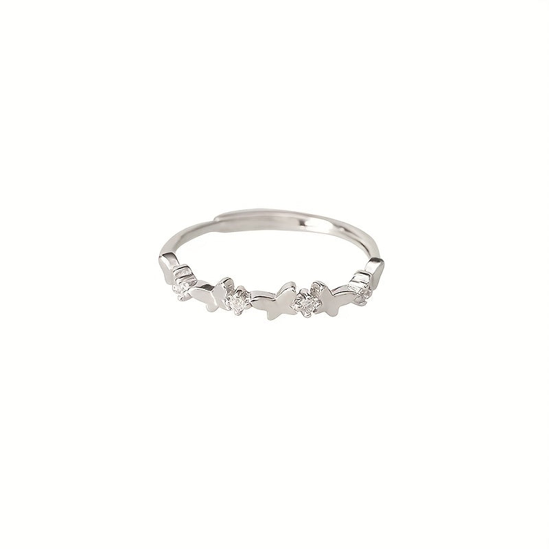 S925 Silvery Butterfly Ring Synthetic Zirconia Inlay Surprise Gift