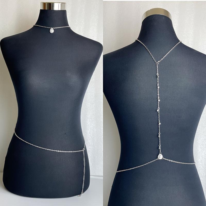 This alluring body chain is the ideal accessory for weddings and honeymoons. It exudes seductive charm and elegance.