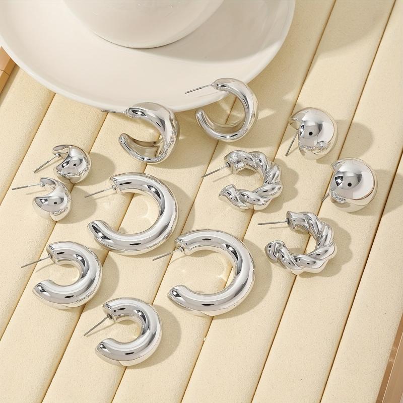 Elevate your style with this set of 12 circular earrings, perfect for parties and everyday wear. These earrings are versatile and stylish, adding a touch of elegance to any outfit.