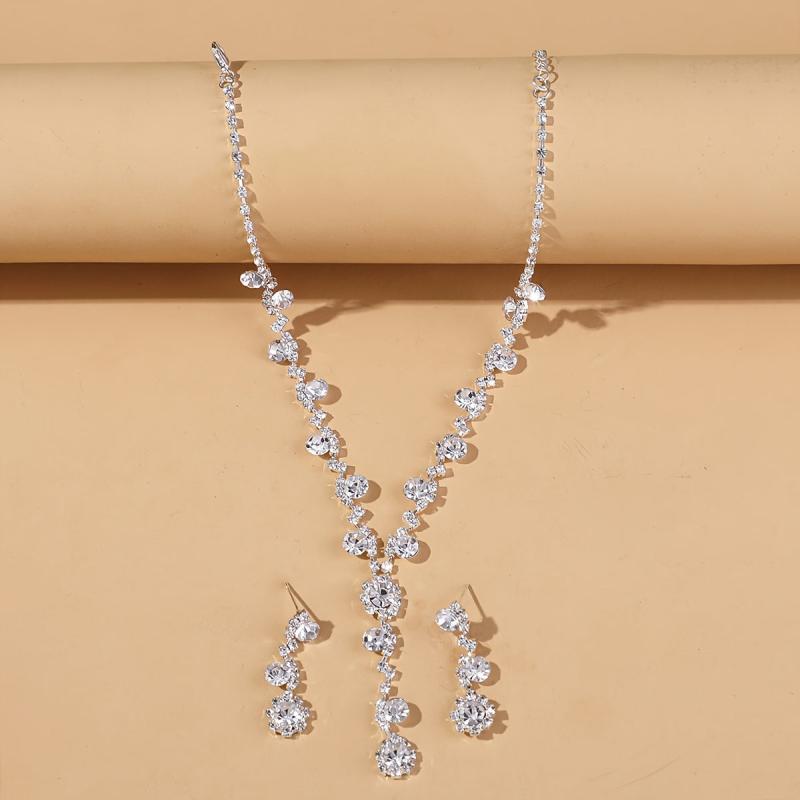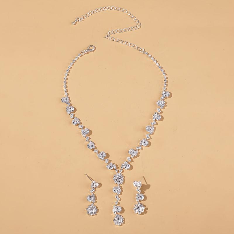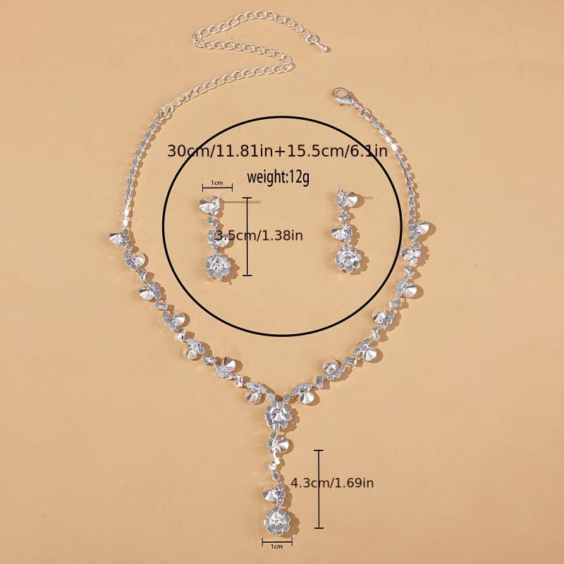 Stunning three-piece jewelry set featuring rhinestone inlaid heart design. Plated style suitable for parties and daily wear. Perfect accessory for all seasons.