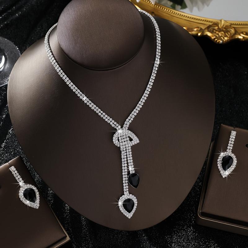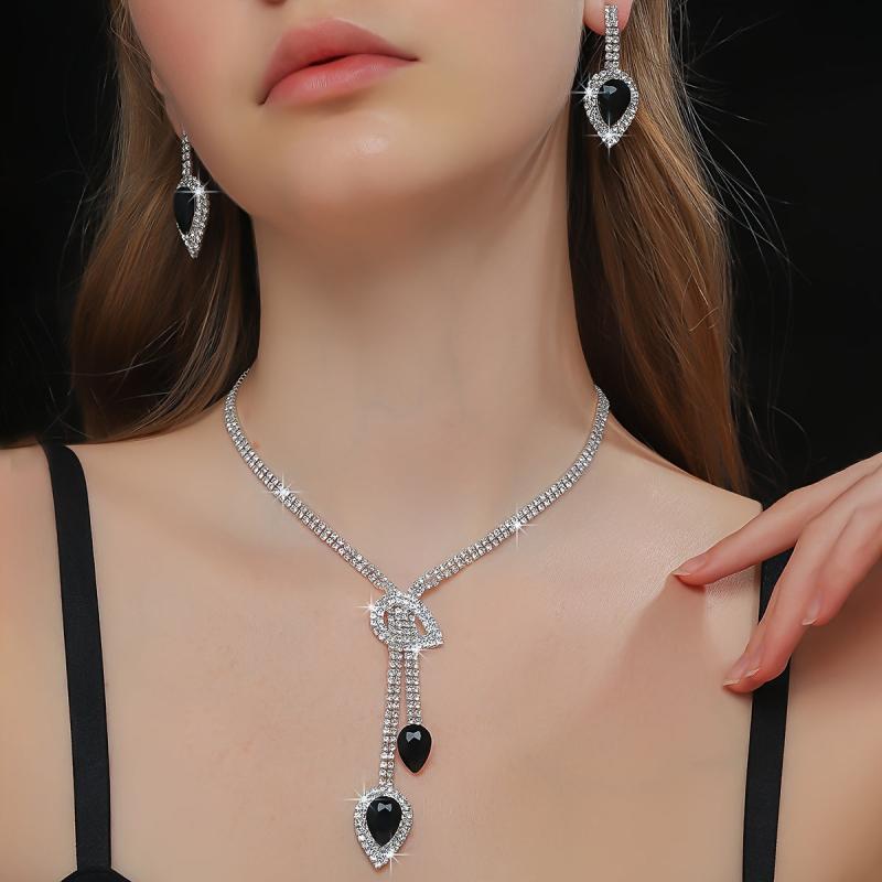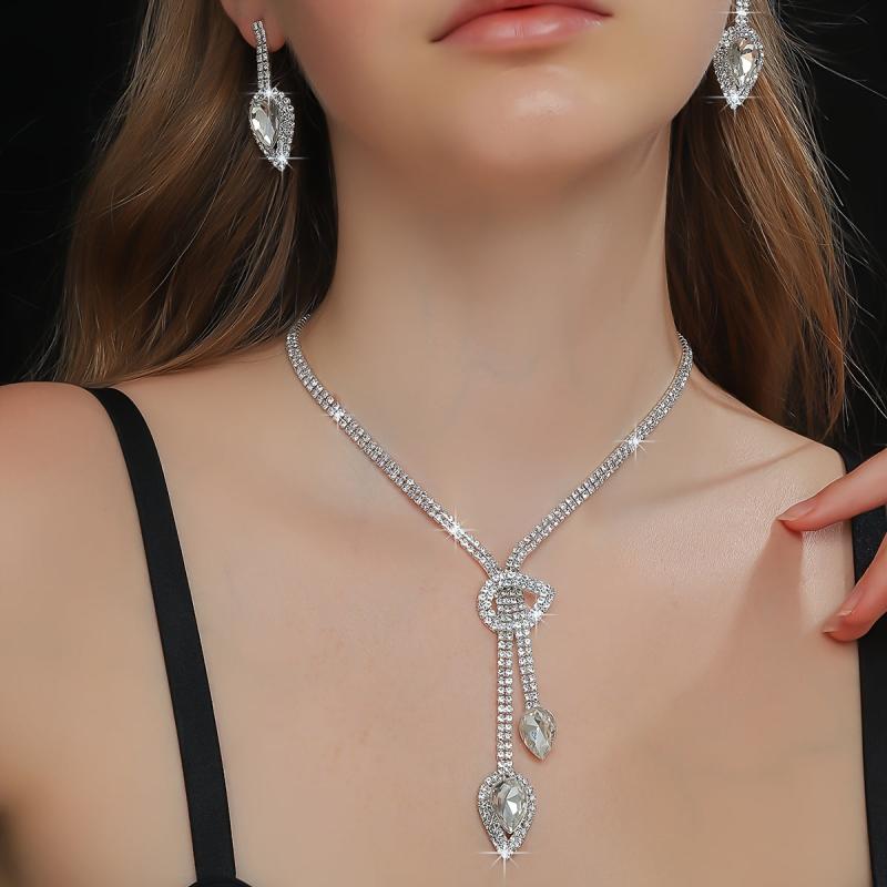 Complete your party look with this elegant two-piece jewelry set featuring synthetic teardrop designs. Perfect for weddings, special occasions, and parties.