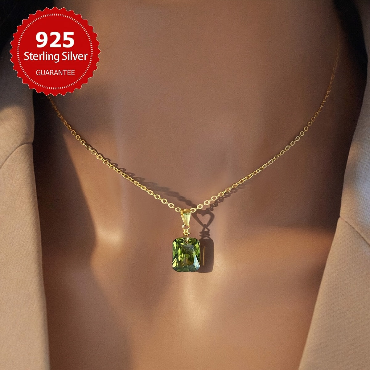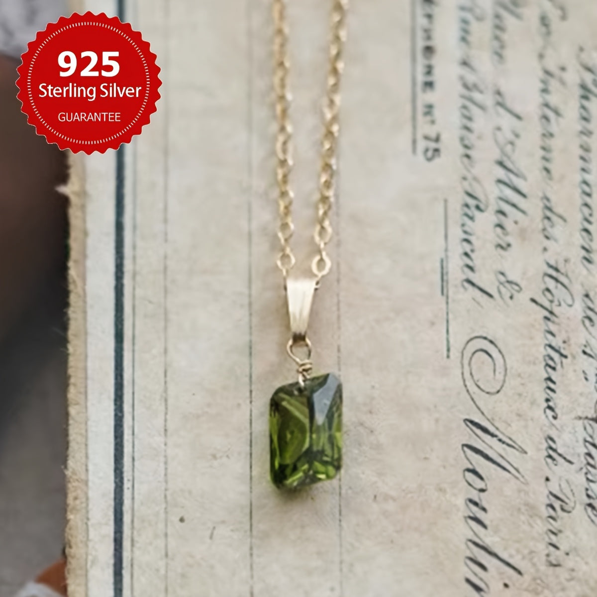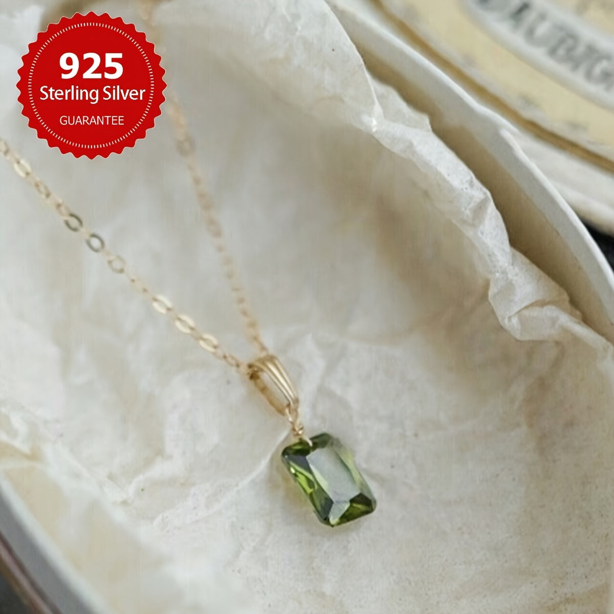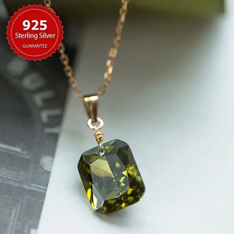 Elegant and stylish pendant necklace featuring a high-quality olive green zirconia stone set in sterling silver. Perfect for adding a touch of sophistication to any outfit.