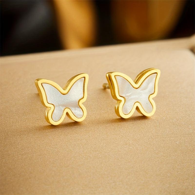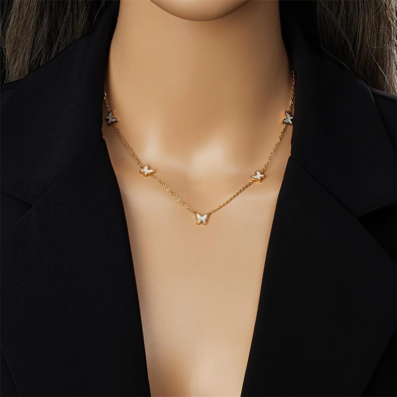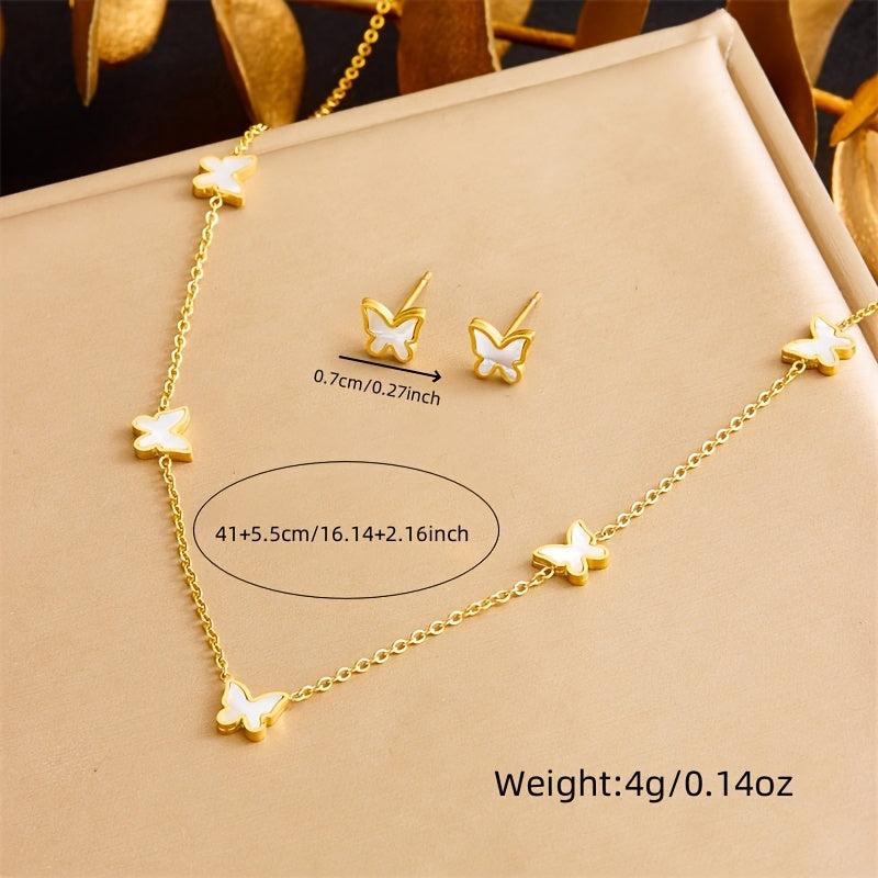 Beautiful stainless steel necklace and earring set featuring classic butterfly elements. A fashionable accessory suitable for gift giving.