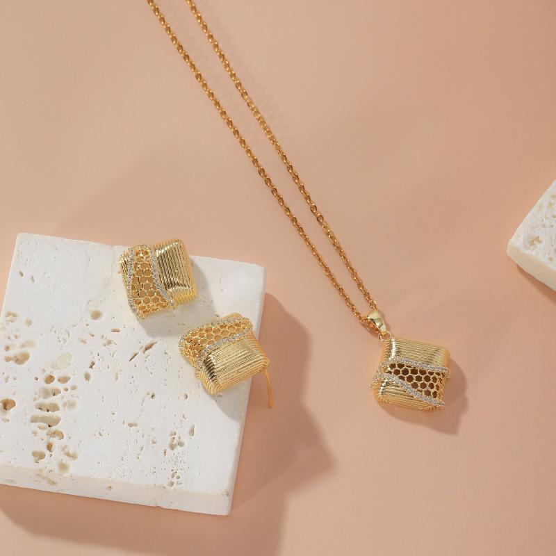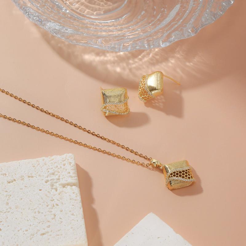This elegant set includes a stainless steel necklace and earrings, perfect for parties or a day at the beach. The hypoallergenic material is safe and comfortable for sensitive skin.