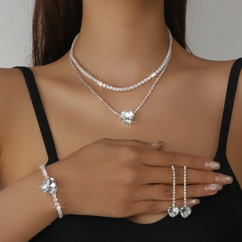Add sparkle to your outfit with this stunning jewelry set featuring flashing rhinestones. Perfect for nightclubs, weddings, parties, and more!