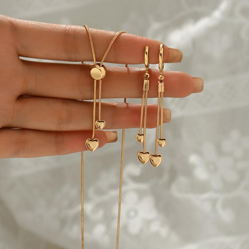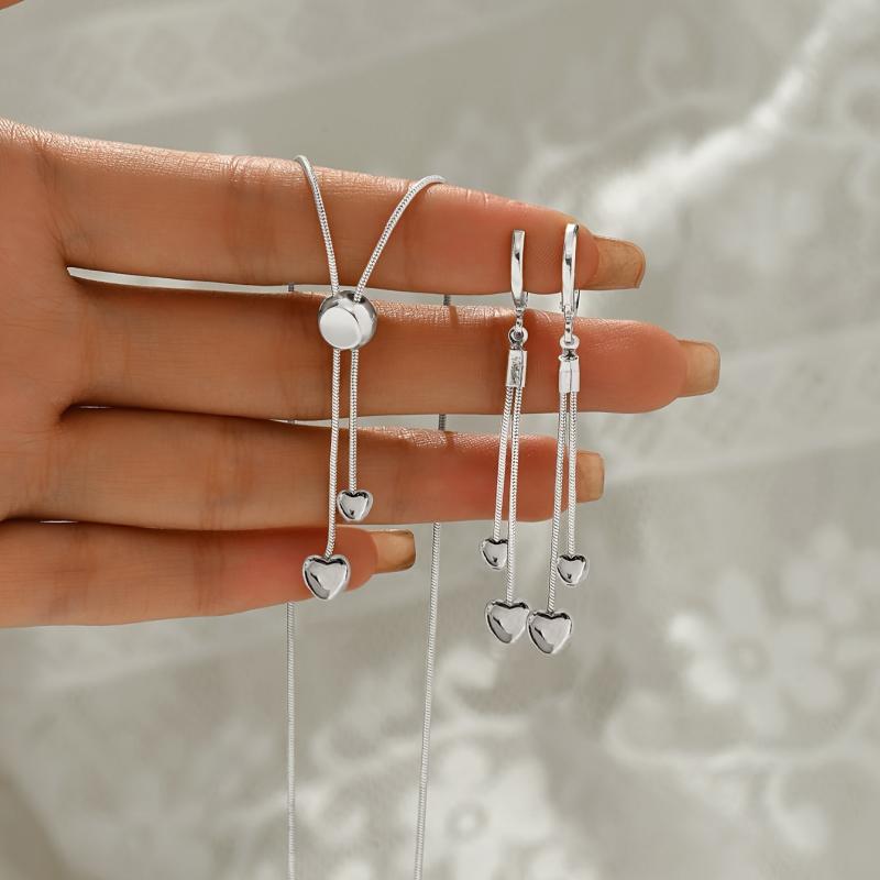 Elevate your style with this fashionable jewelry set featuring a snake bone chain necklace with an adjustable love pendant. Perfect for adding a trendy touch to your look.