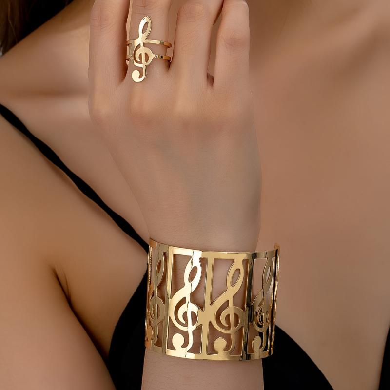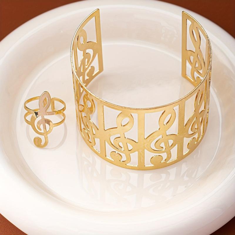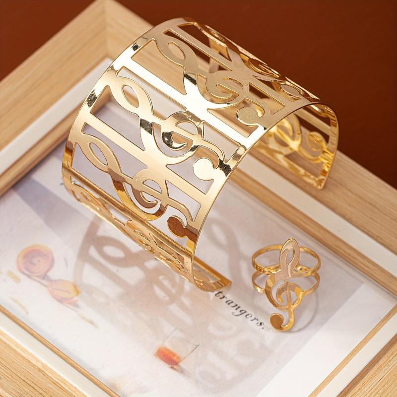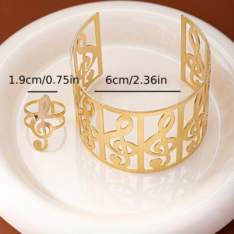 Elevate your style with this fashionable and personalized set of a bracelet and ring featuring musical note designs. Perfect for summer vibes!