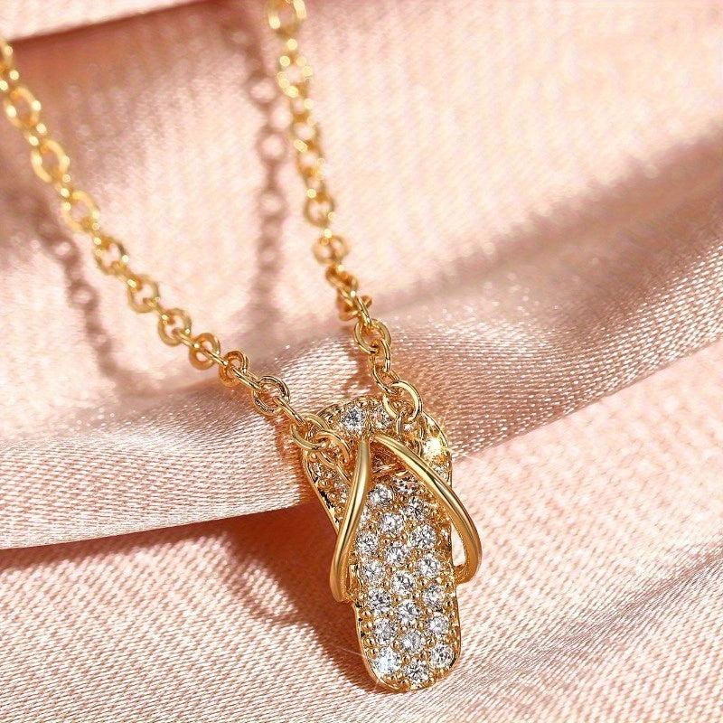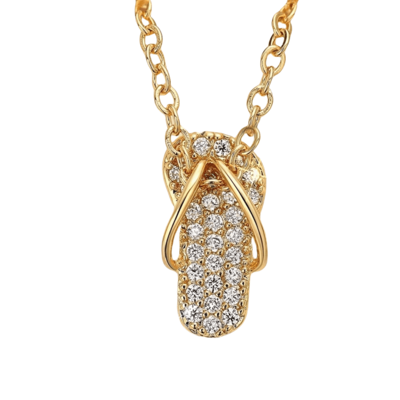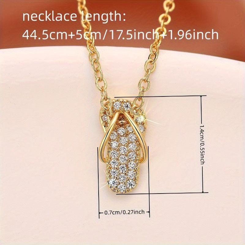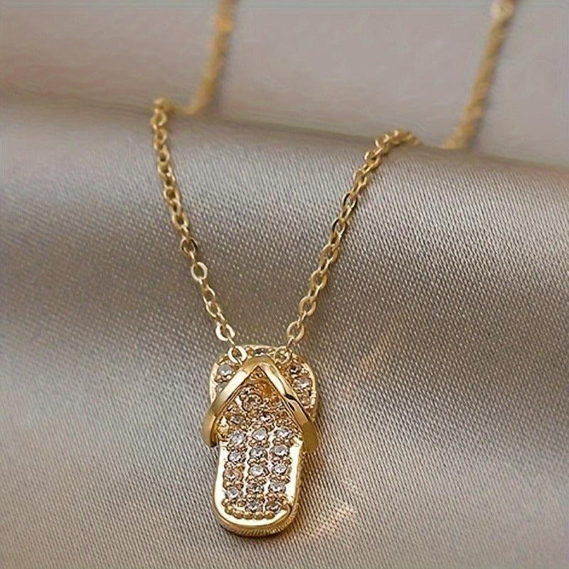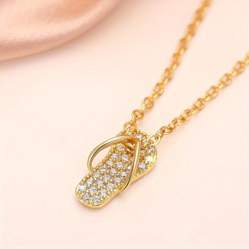 Summer Slippers Pendant Necklace with Zirconia Stones
