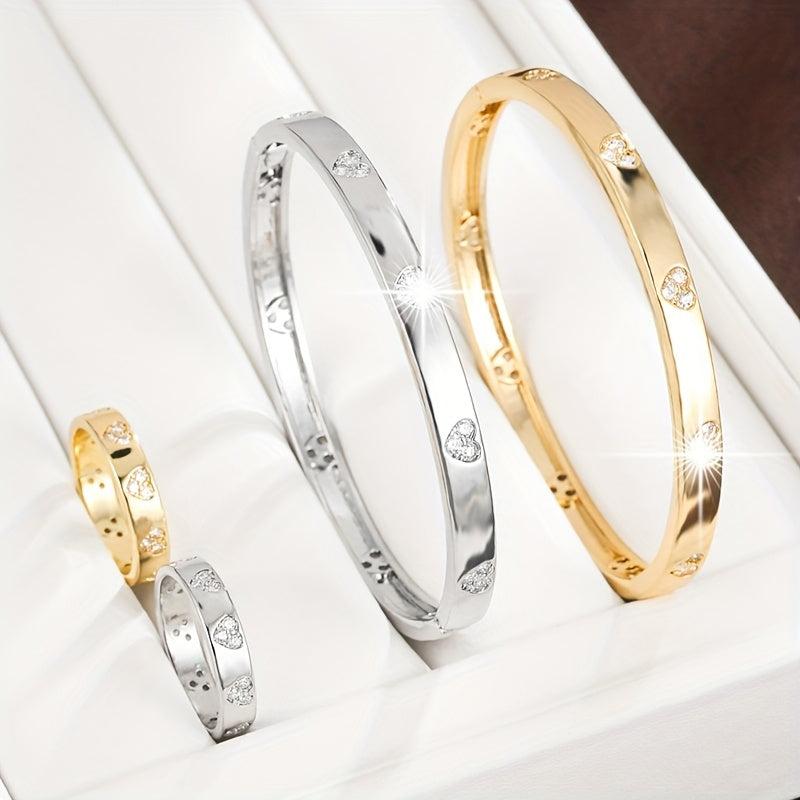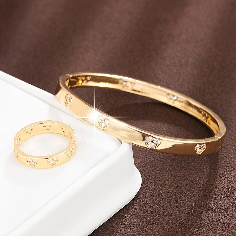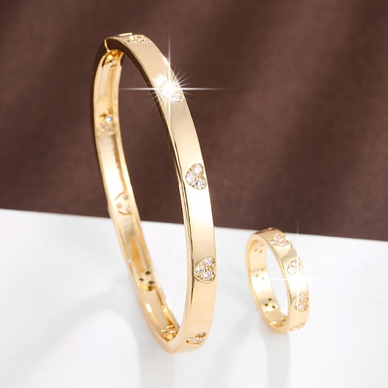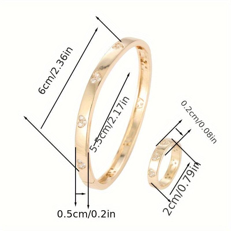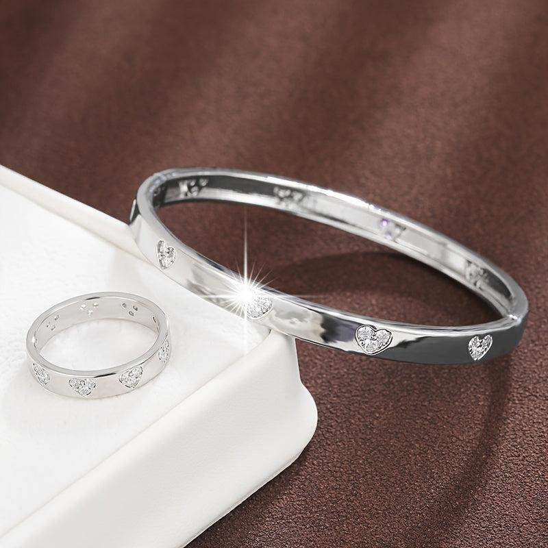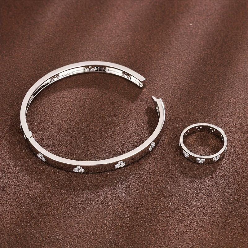 Elegant and sophisticated bracelet and ring set featuring synthetic zirconia stones. Perfect for adding a touch of sparkle to any outfit.