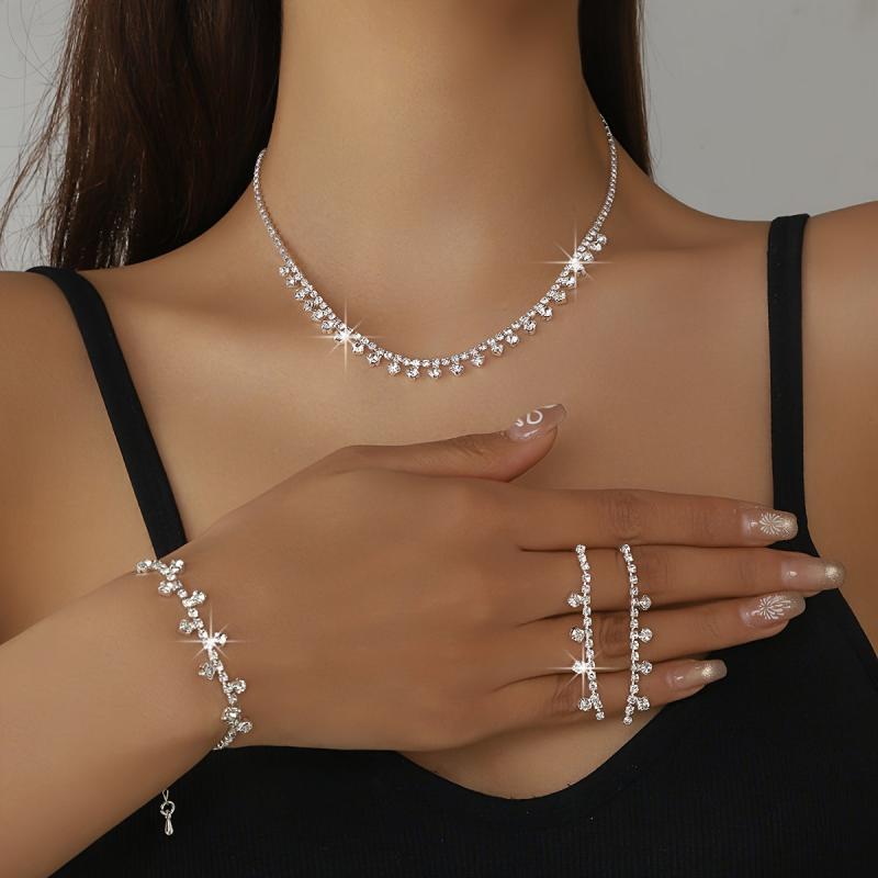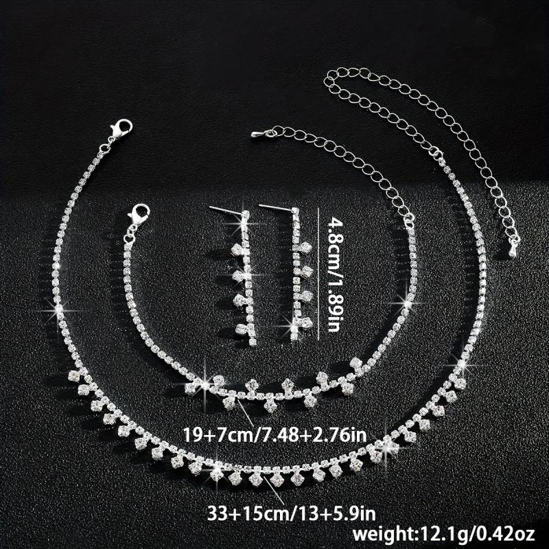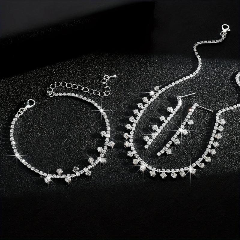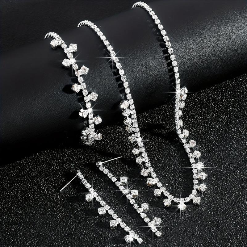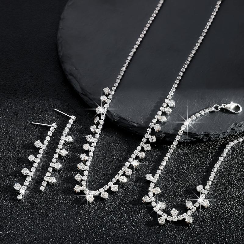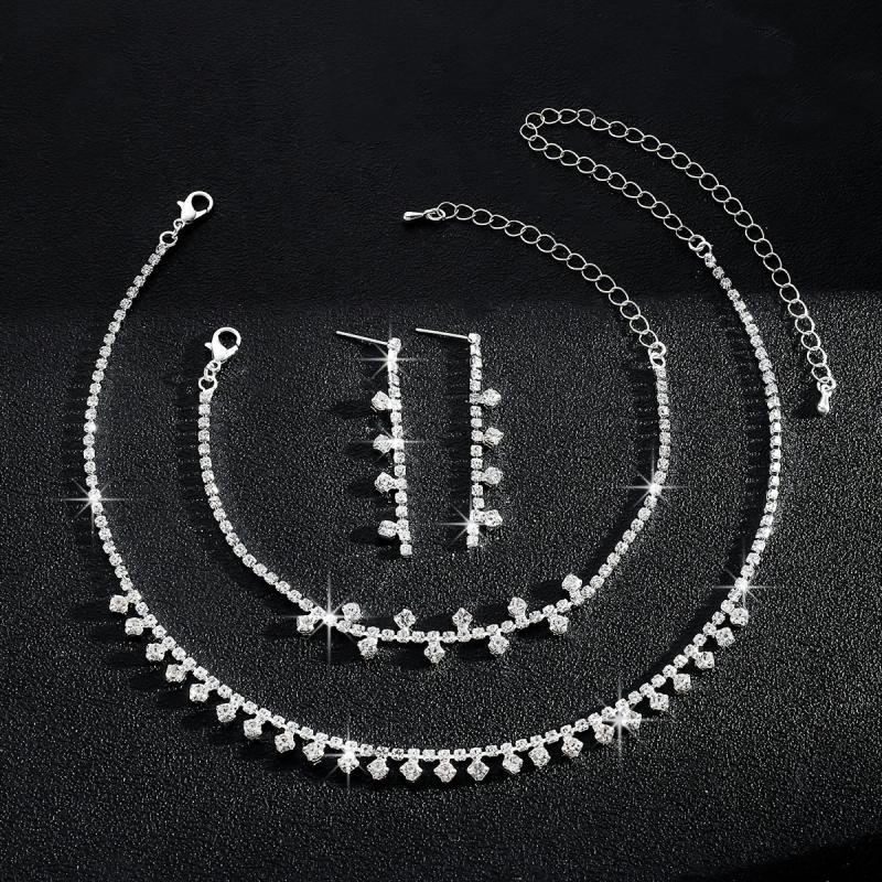 Enhance your outfit with this elegant three-piece set featuring a necklace, bracelet, and earrings in a chic temperament style.