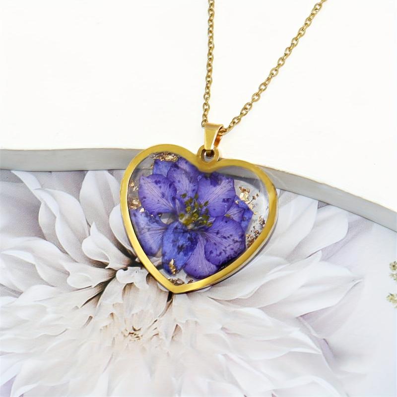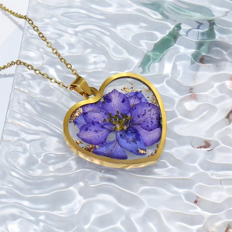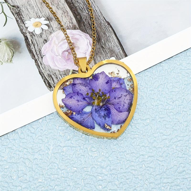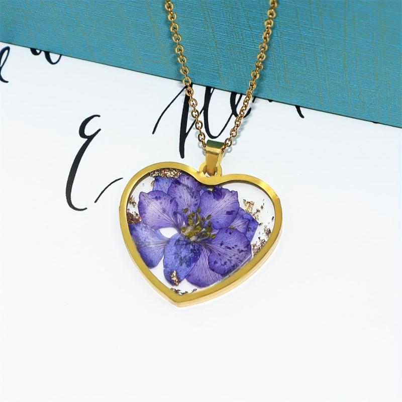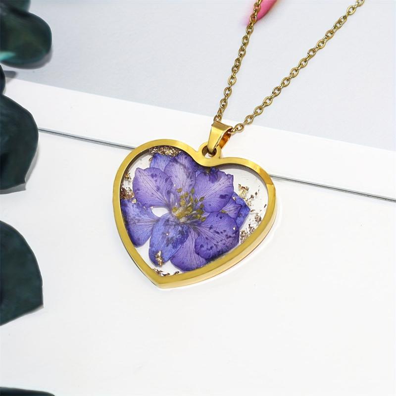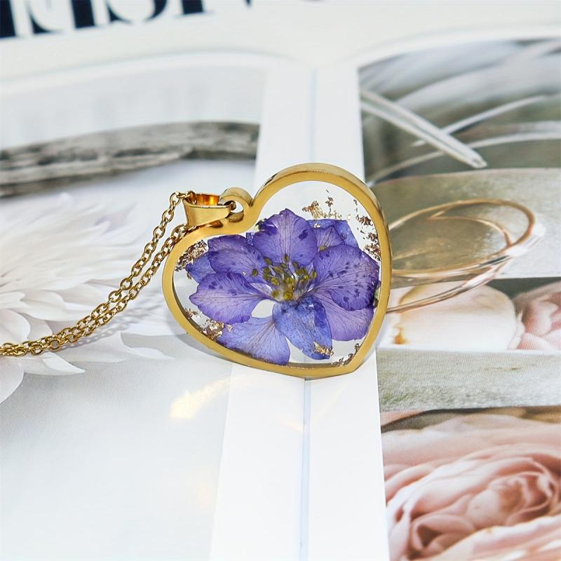 Elevate your style with this beautiful heart-shaped dried flower pendant necklace. Perfect for any occasion, this golden tone bohemian jewelry piece is an ideal gift for women for parties or casual attire, or as a Valentine's Day surprise.