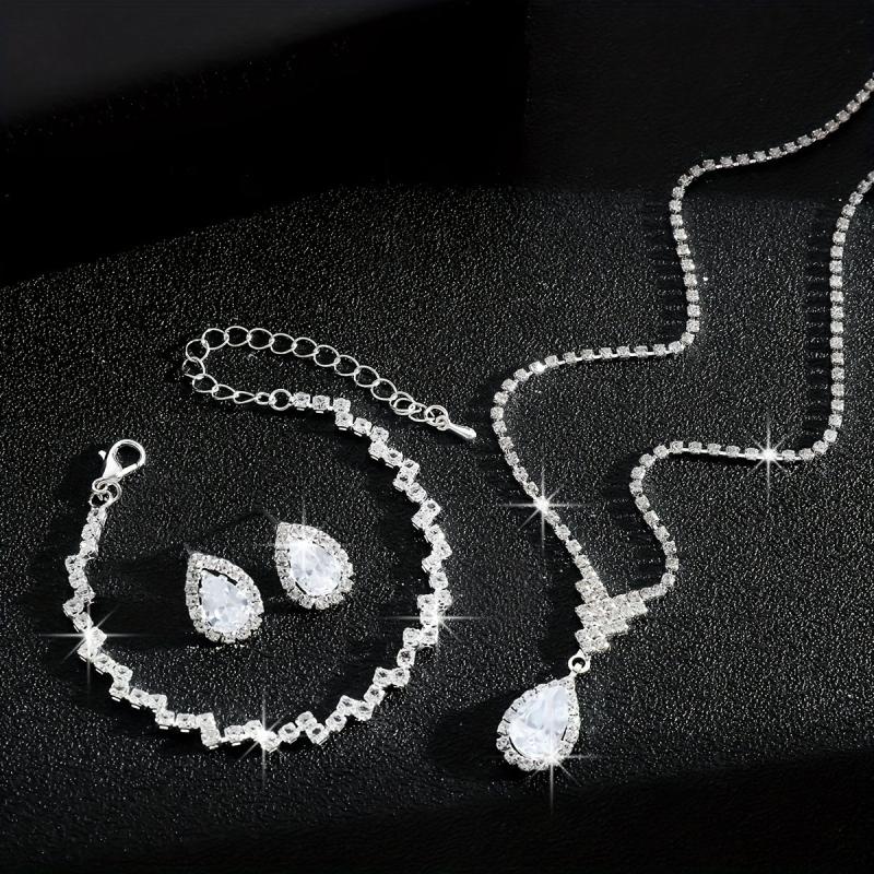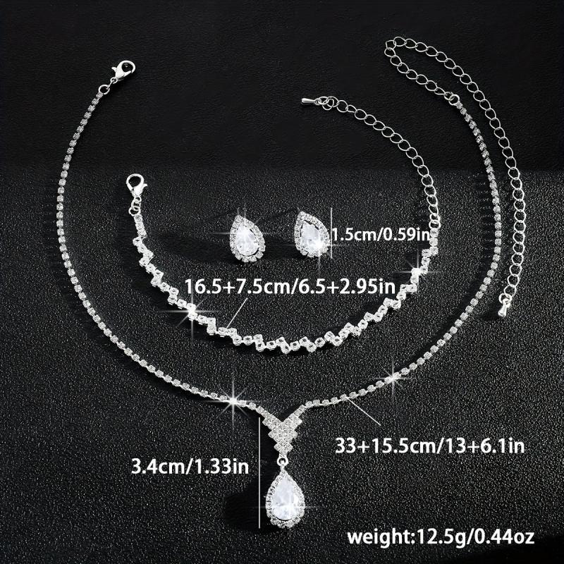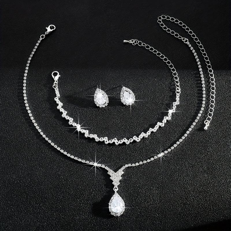 This three-piece set features a modern style with water drop design, perfect for bridal and wedding accessories.