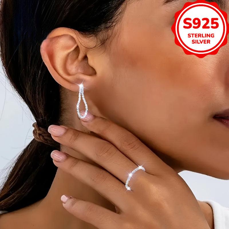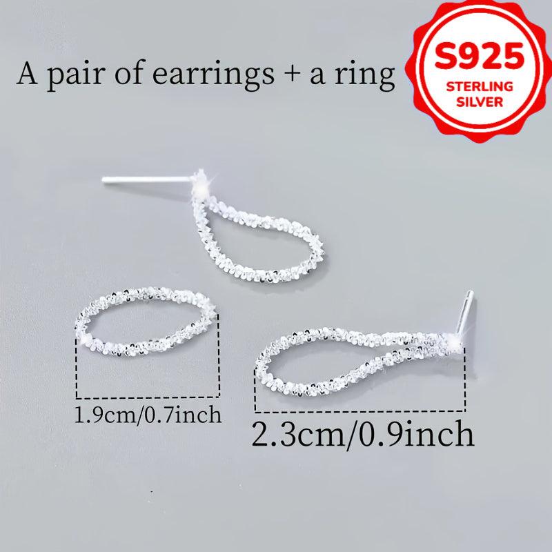 This set includes a pair of wave drop earrings and a matching ring, made of hypoallergenic 925 sterling silver. Perfect for festivals and everyday wear.