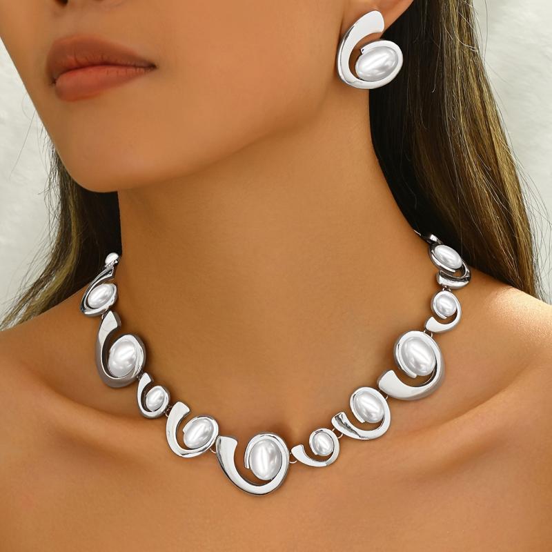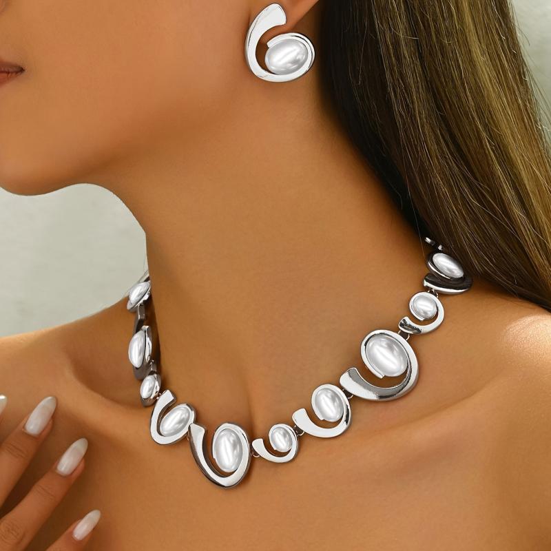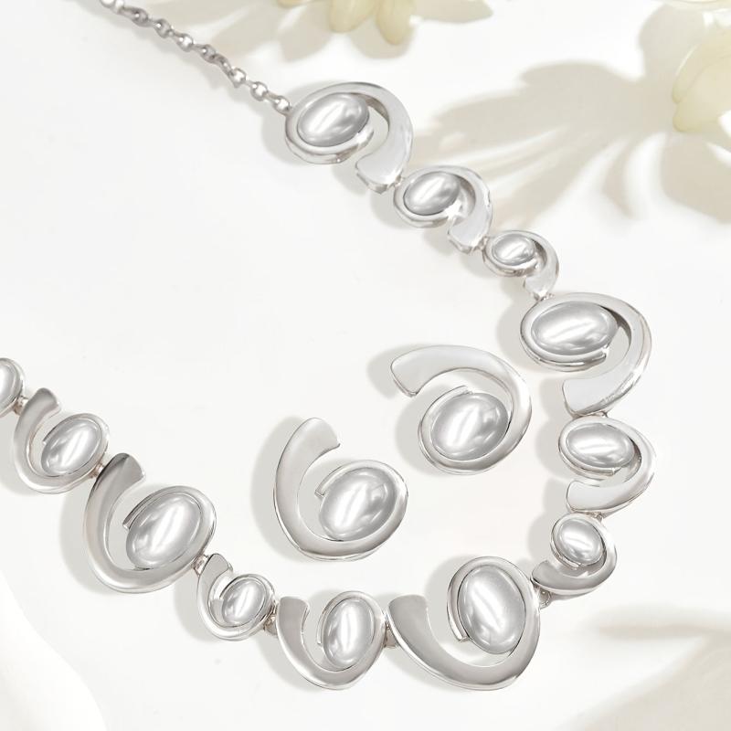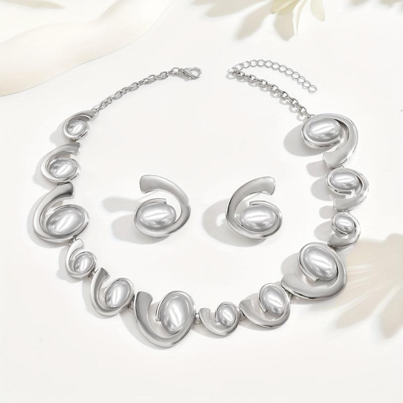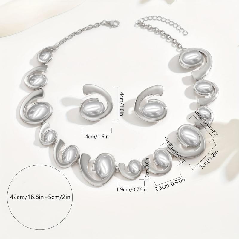 This set includes two classic and fashionable earrings featuring a silvery three-dimensional hollow geometric spiral pattern with acrylic inlay. Size 6.