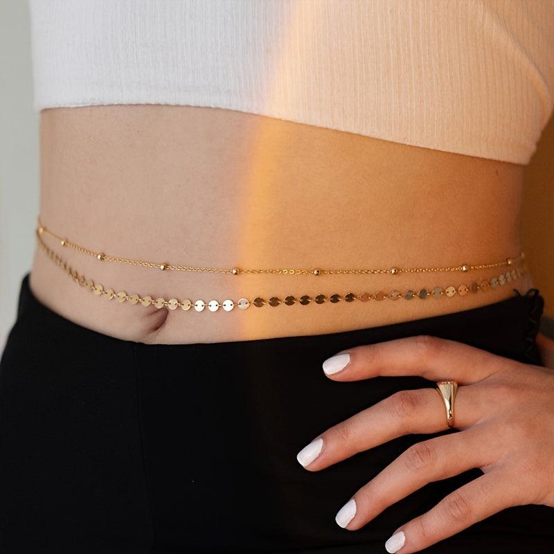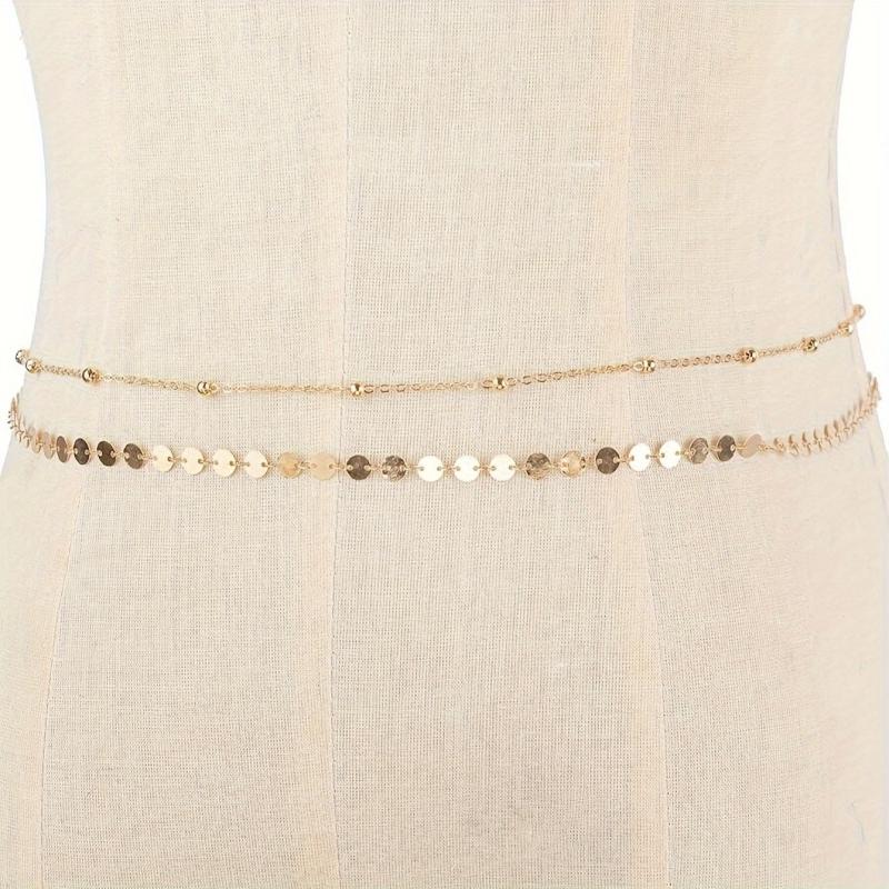 Elevate your look with this minimalist style beaded disc chain waist belt. Perfect for date nights or as a holiday gift.