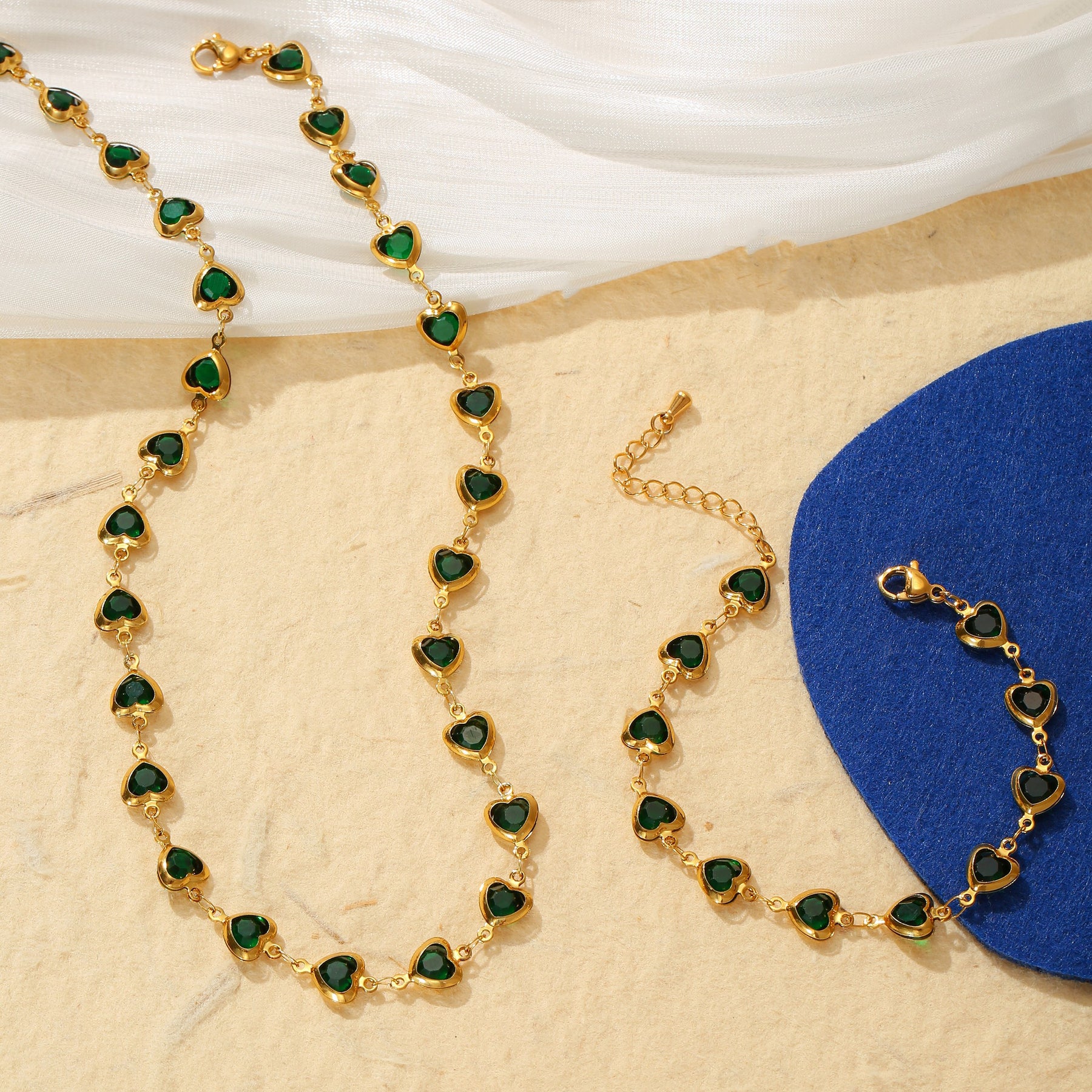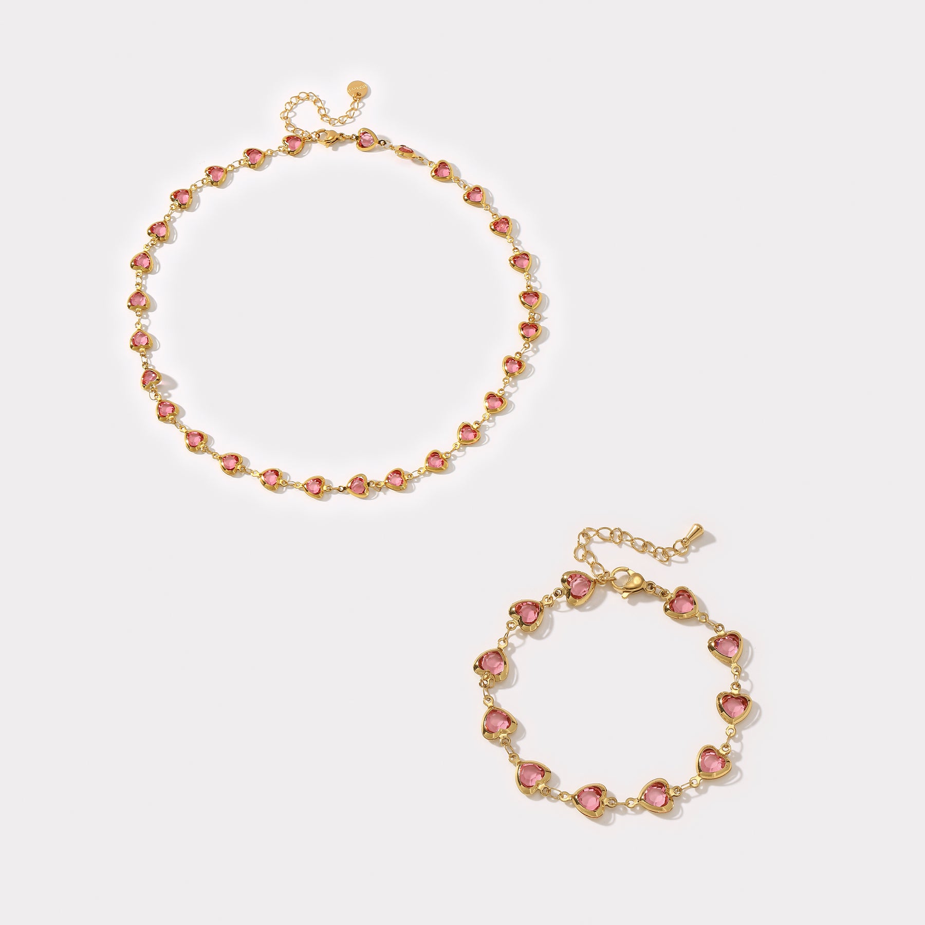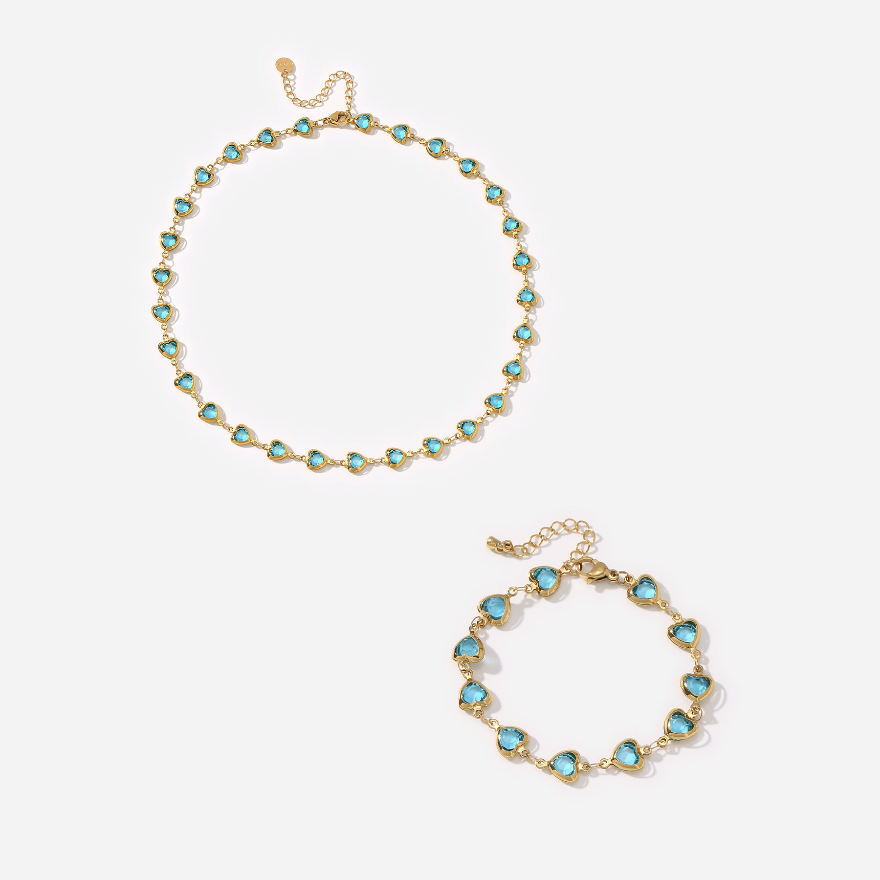 This set includes a necklace and bracelet with multiple heart decorations. Made of stainless steel, it is hypoallergenic and perfect for daily wear, shopping, and vacation.