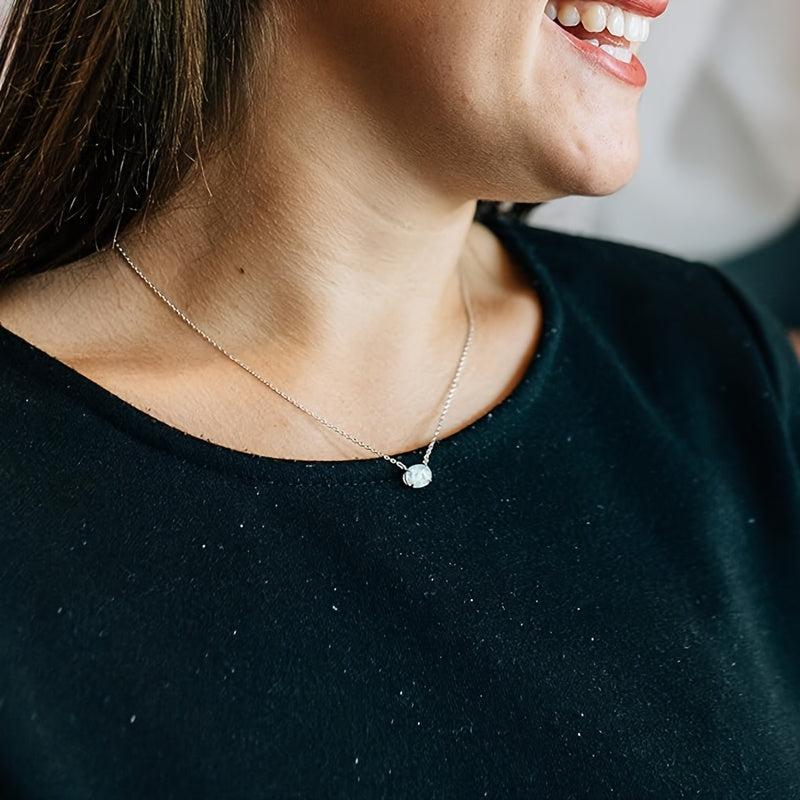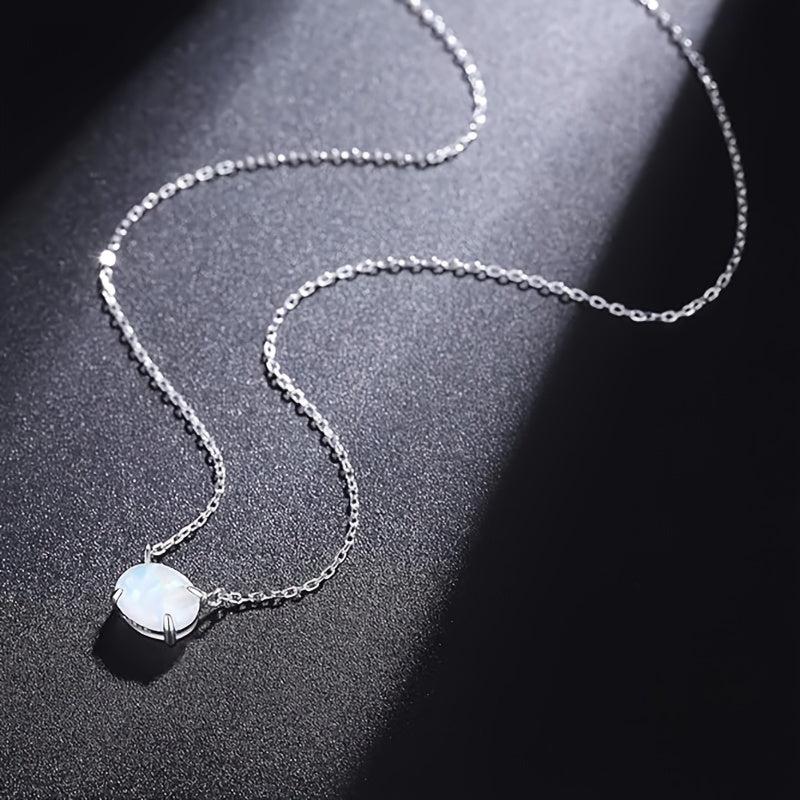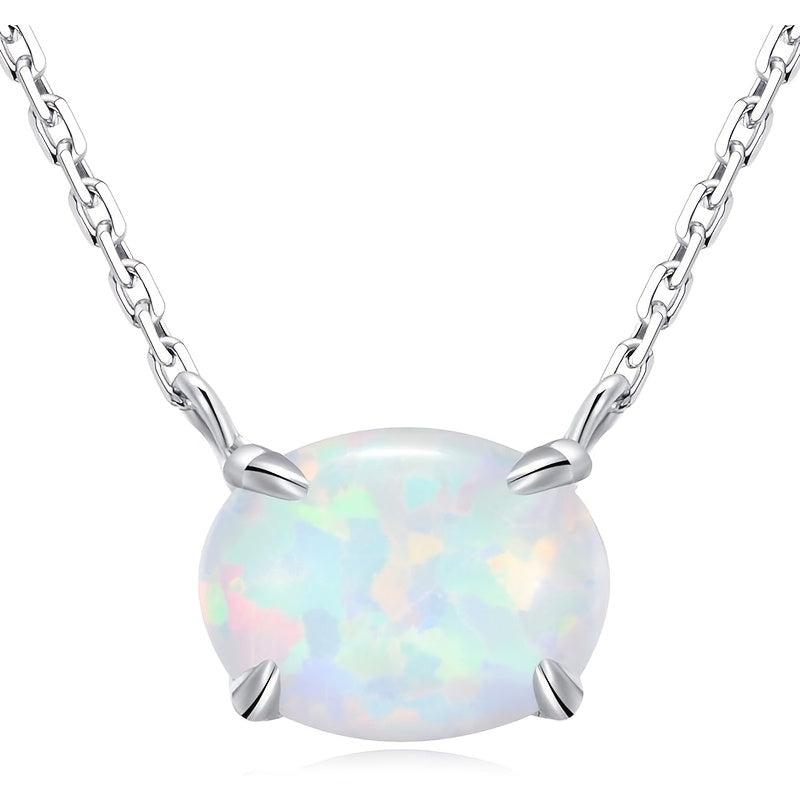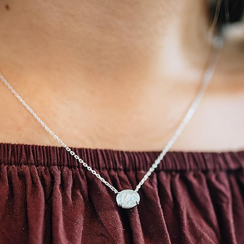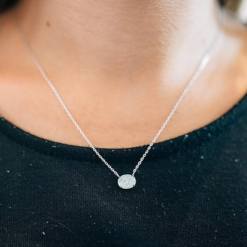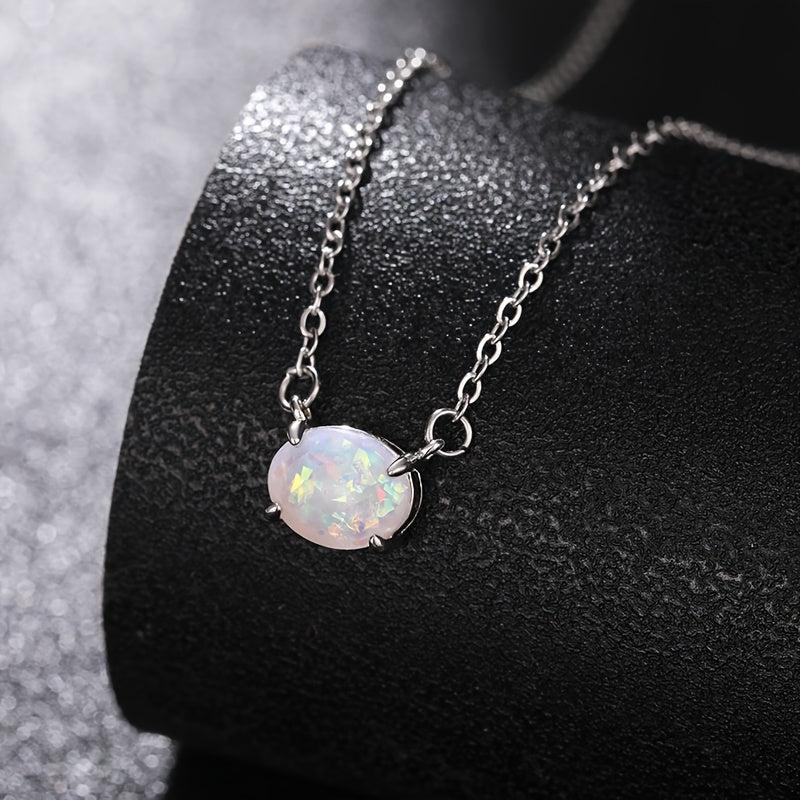 This pendant necklace features a 4 prong oval synthetic opal that is ideal for daily wear, parties, and gifting. It adds a touch of elegance to any outfit.