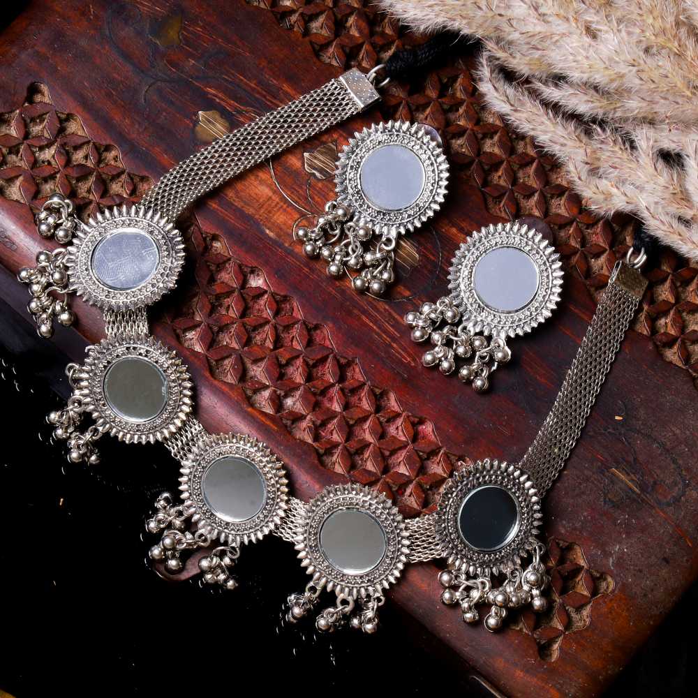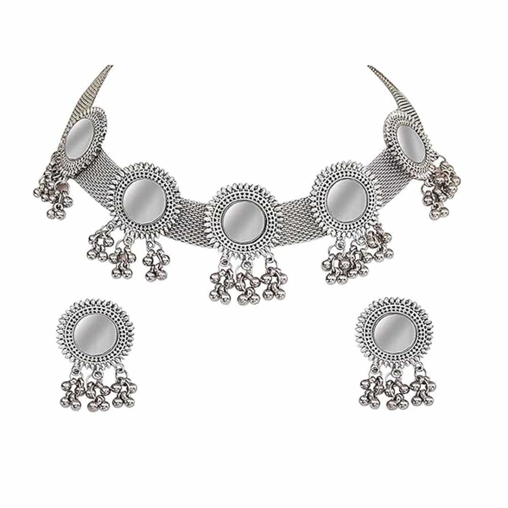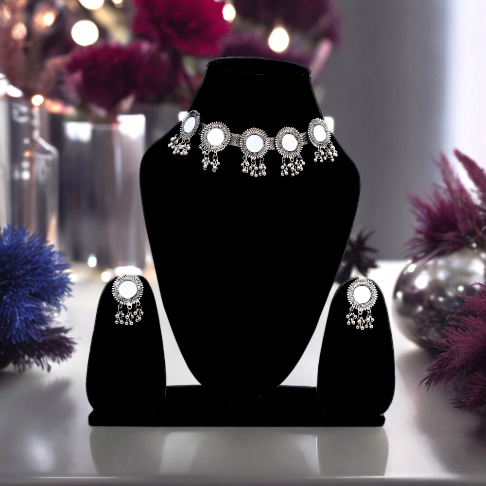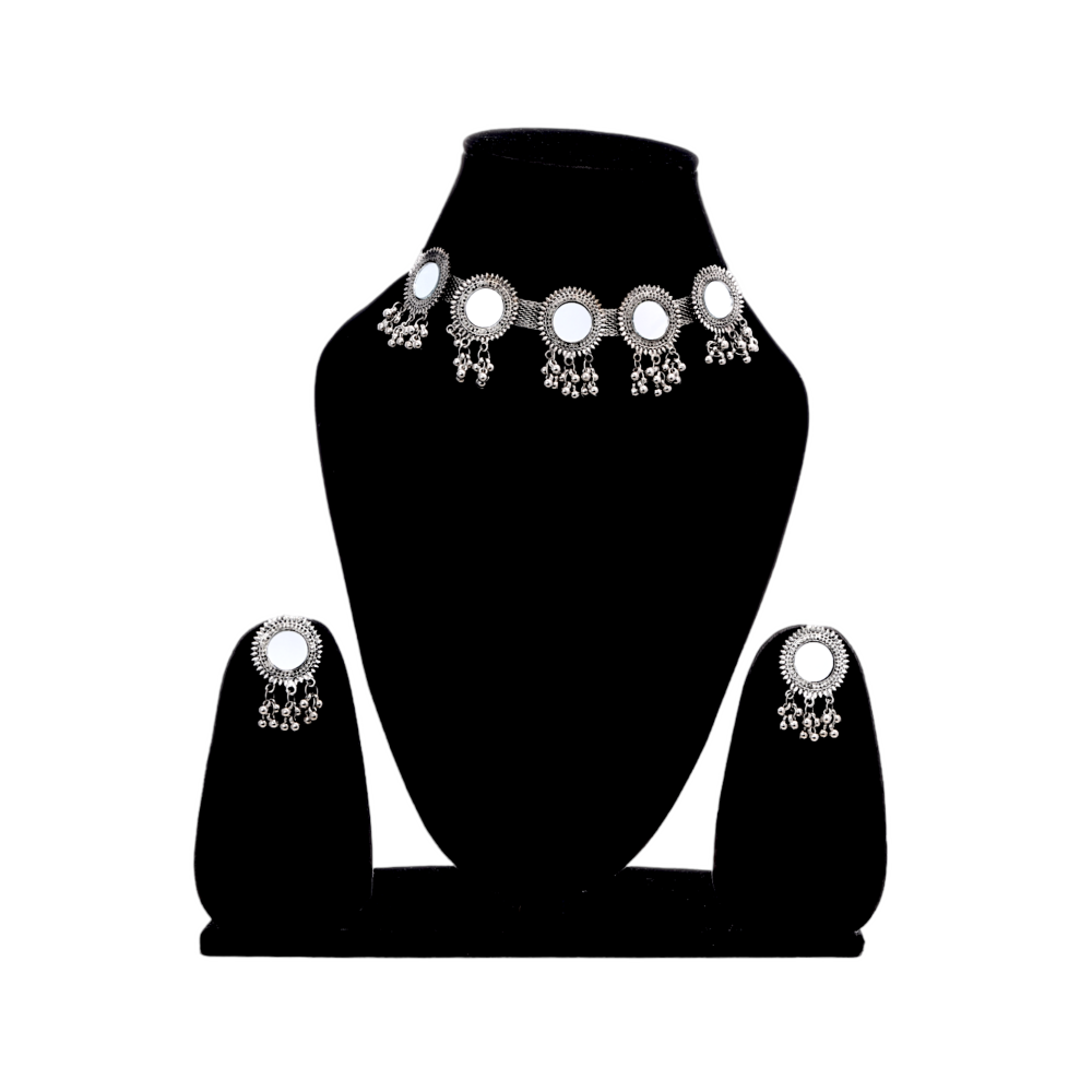 • Détails du produit : Cet ensemble de bijoux de forme ronde est fabriqué à partir d'un matériau de haute qualité plaqué argent oxydé et parsemé de miroirs.