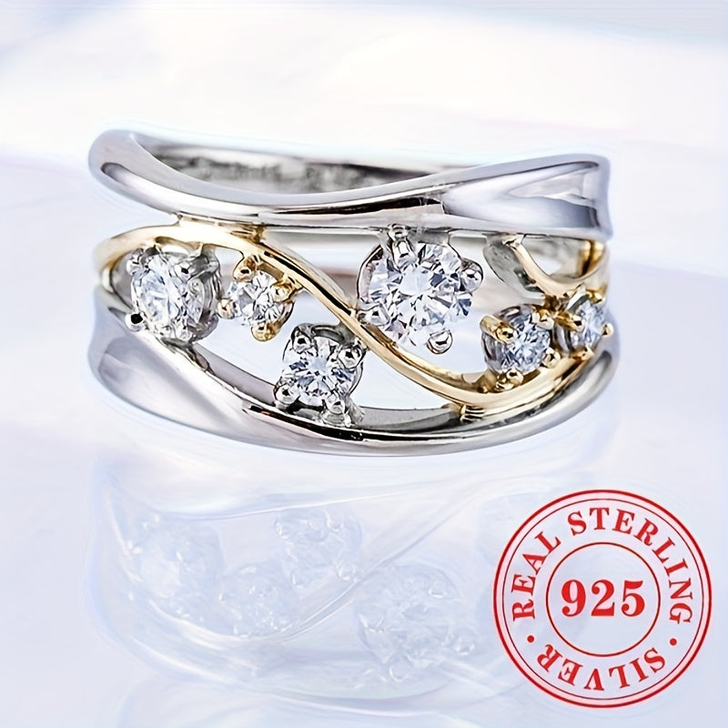 Add a touch of elegance with this synthetic zirconium ring crafted in two tones for a stunning look. Made of pure silvery S925, this ring is perfect for daily wear or special occasions. It also makes a great gift for a loved one.