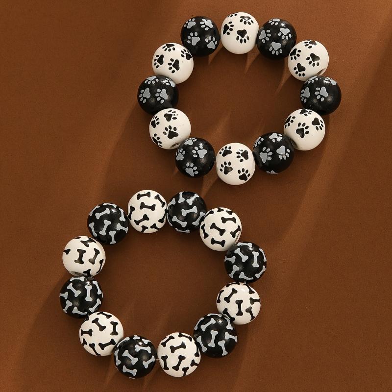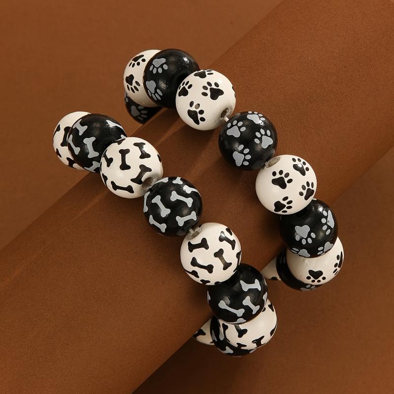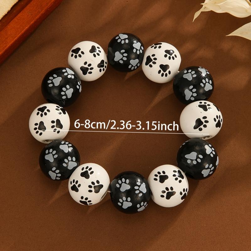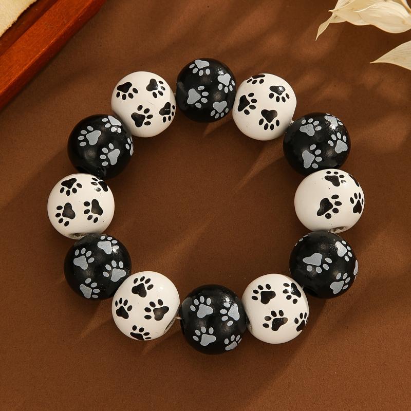 This adorable wooden bead bracelet features dog paw prints, perfect for daily wear or as a gift. Playful and stylish accessory.