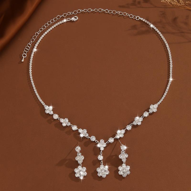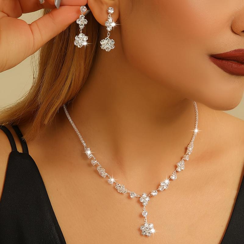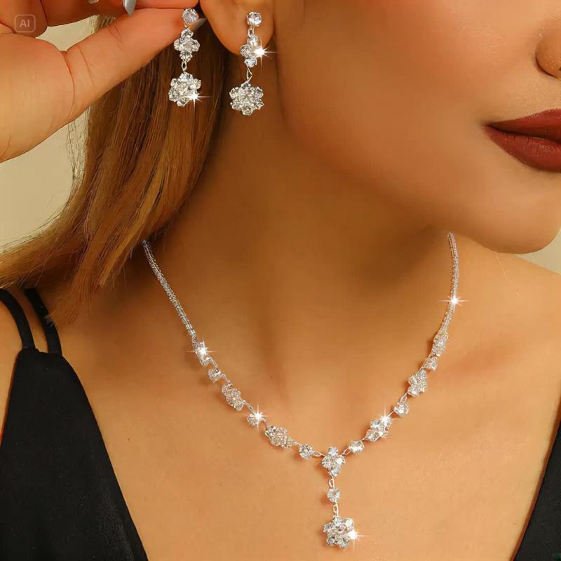 • Includes earrings, necklace, and collarbone chain