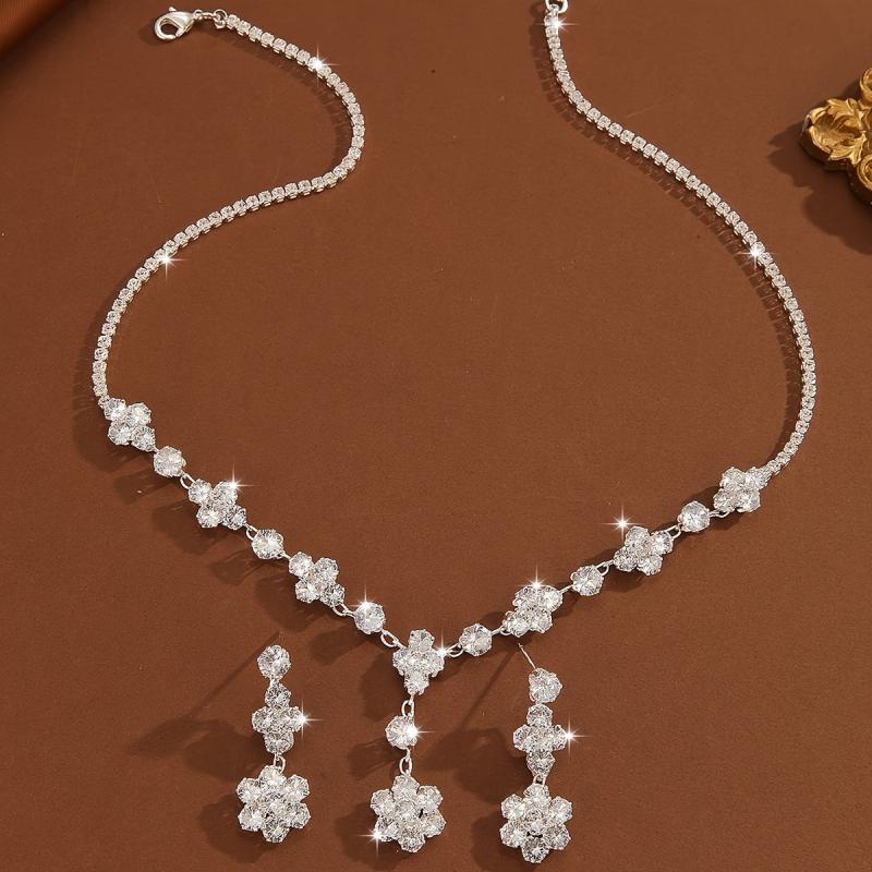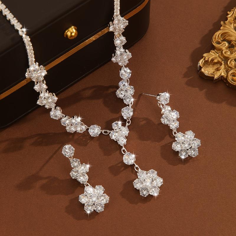 Zirconia Earrings Necklace Set High End Jewelry