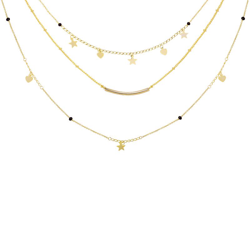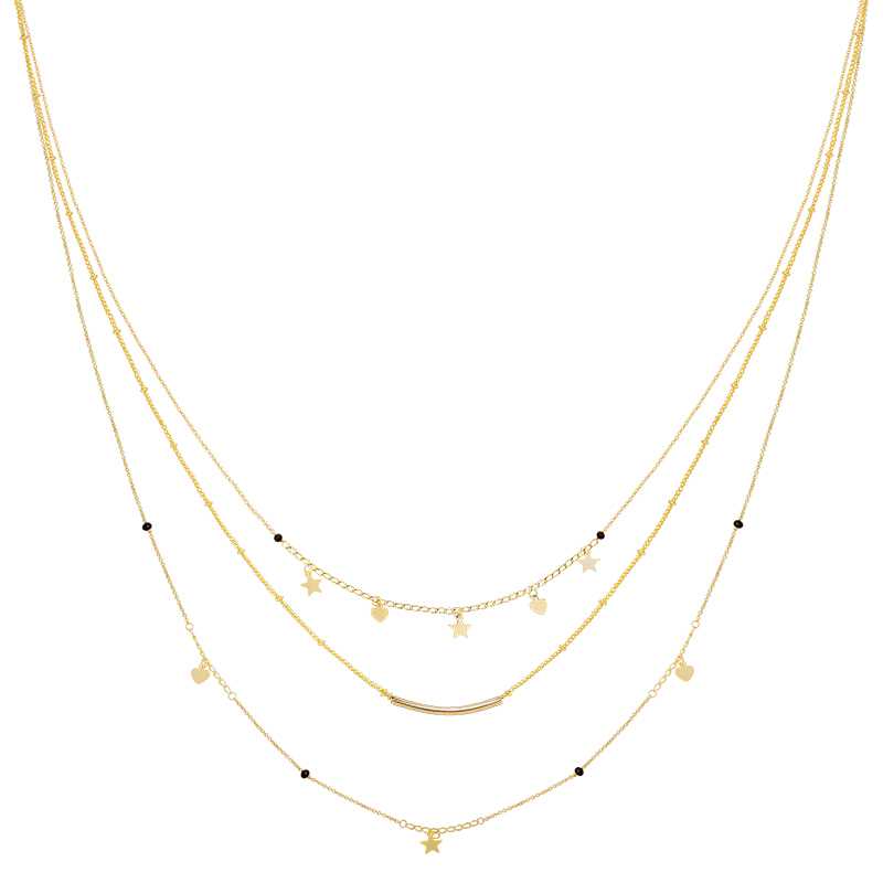 Ce collier multicouches plaqué or est joliment orné de petites étoiles, de perles et de breloques en forme de cœur. Il mettra en valeur votre long et beau cou. Vous pouvez le porter avec différentes tenues à diverses occasions.