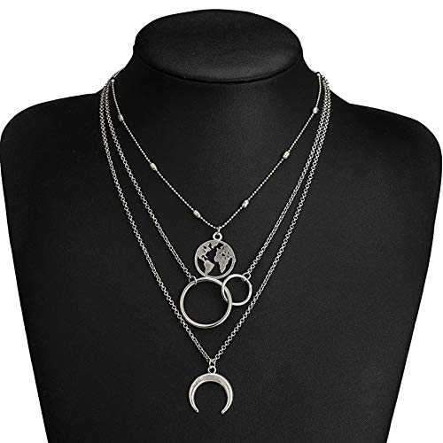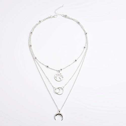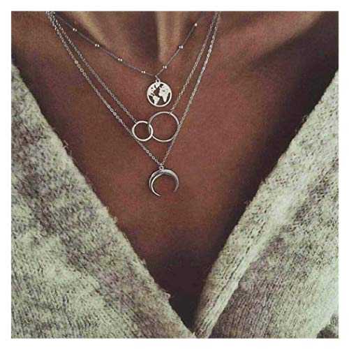 Collier multicouches pour femme avec pendentif carte de lune et chaîne de clavicule style bohème