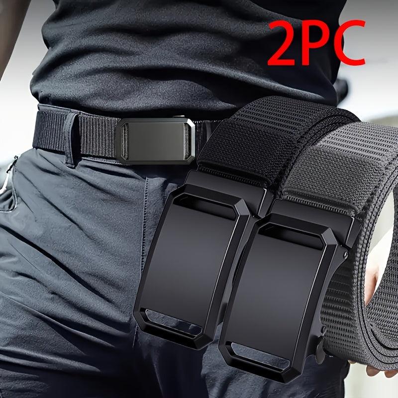 Stay stylish with these 2pcs men's adjustable canvas belts featuring automatic buckle. Perfect for outdoor training and casual wear, they are durable and fashionable, with a college style.