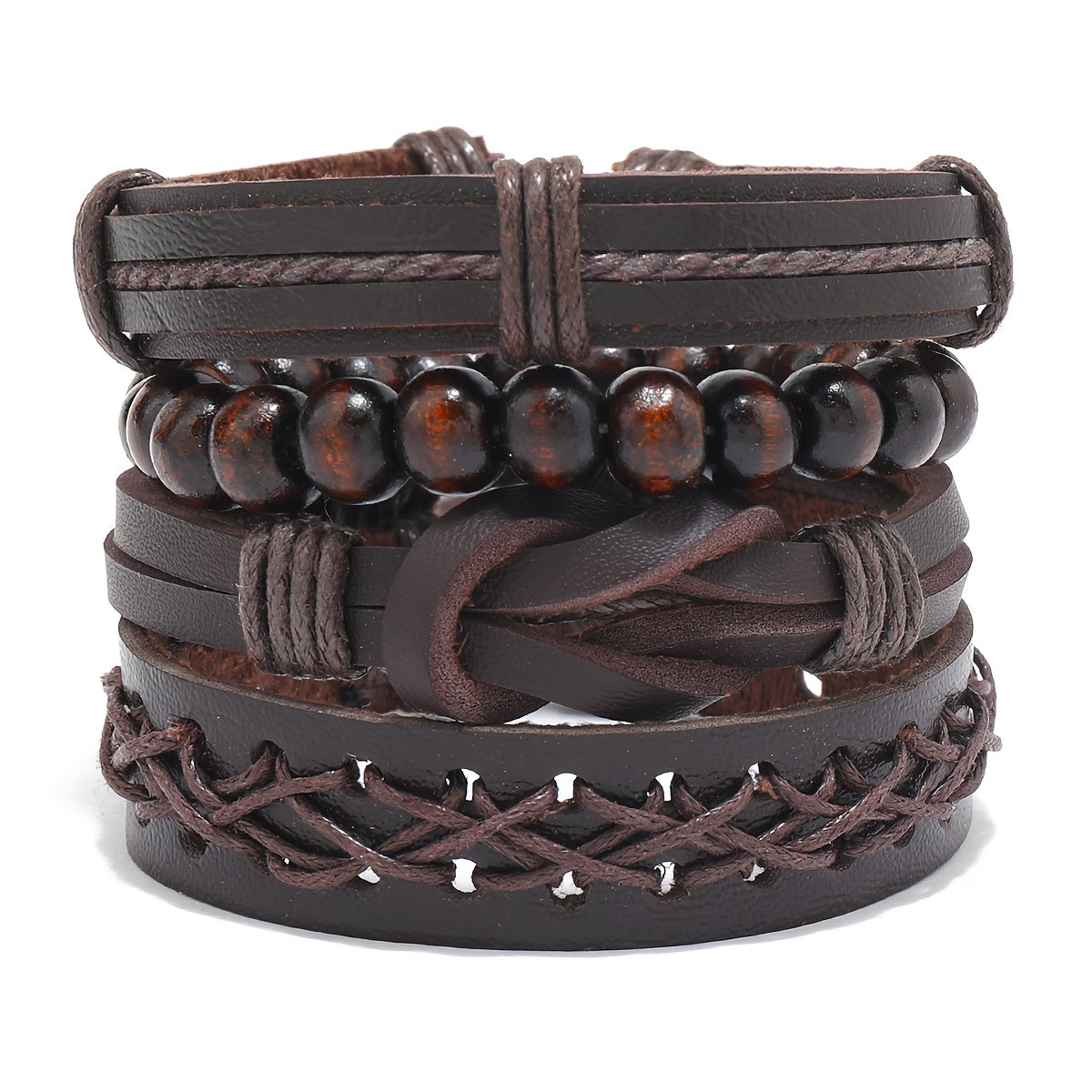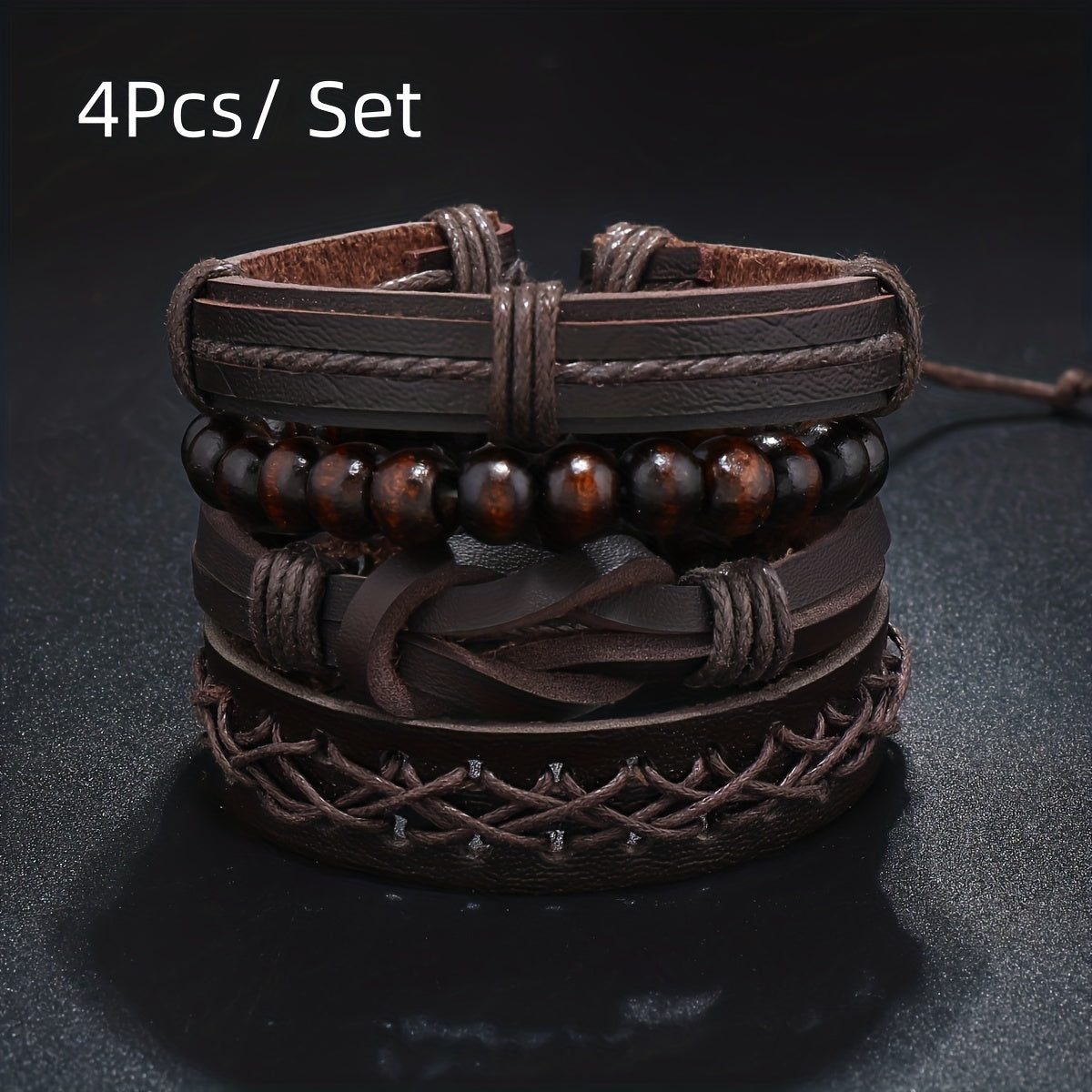 This set includes 4 braided bracelets featuring a retro tree design, perfect for men who appreciate a vintage style. The wristbands are made of durable rope material.