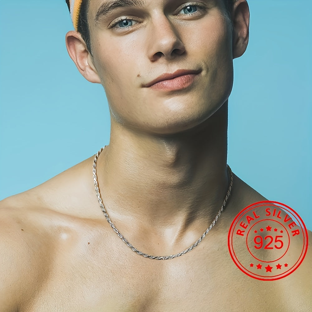 This 925 silver twist rope necklace is suitable for daily wear and is hypoallergenic. It is lightweight at 2.6g, making it comfortable for both men and women.