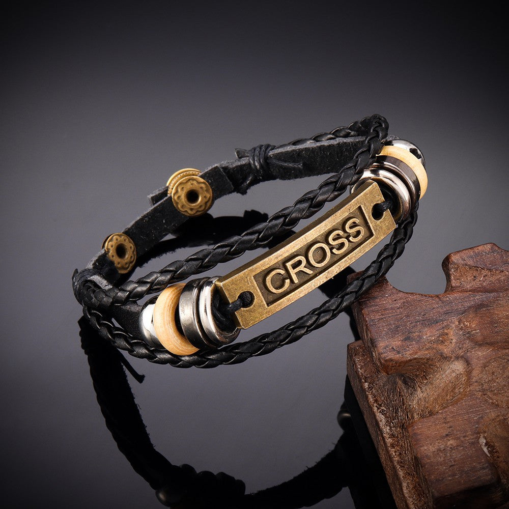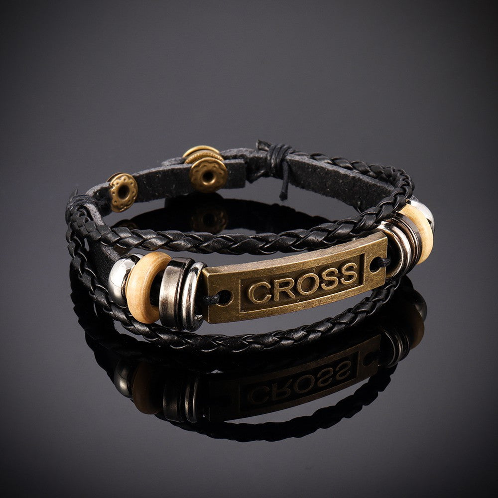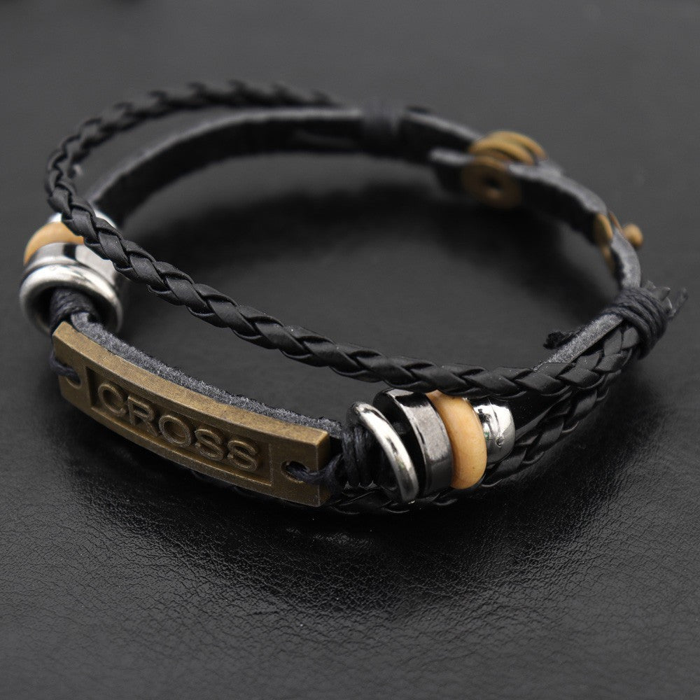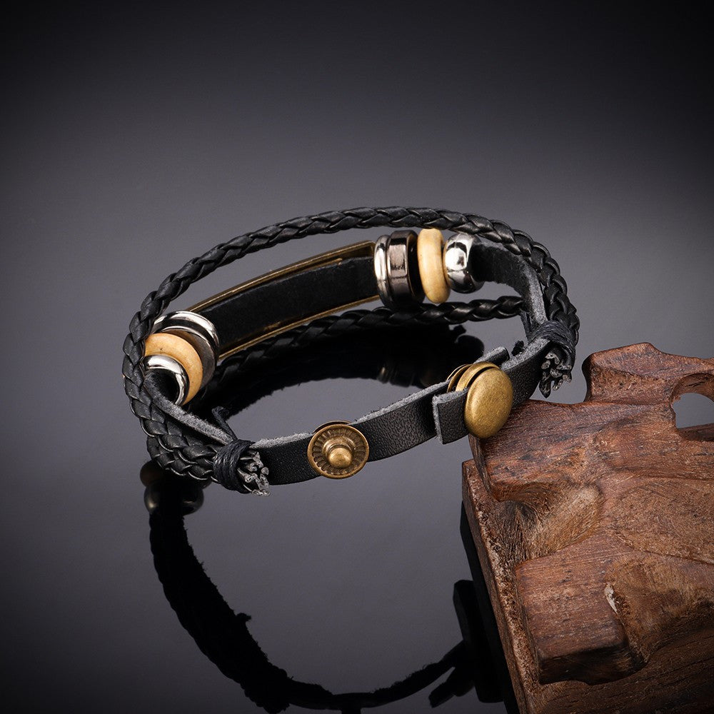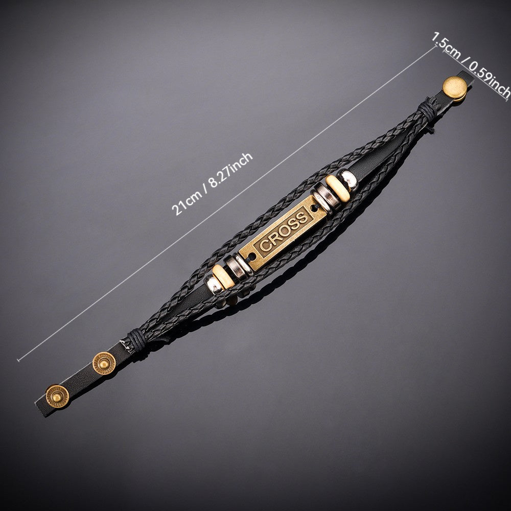 Make a bold statement with this adjustable leather bracelet featuring a Viking punk design and golden A bead. It's the perfect accessory to add edge to your outfit.