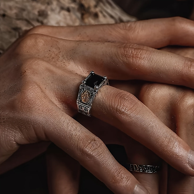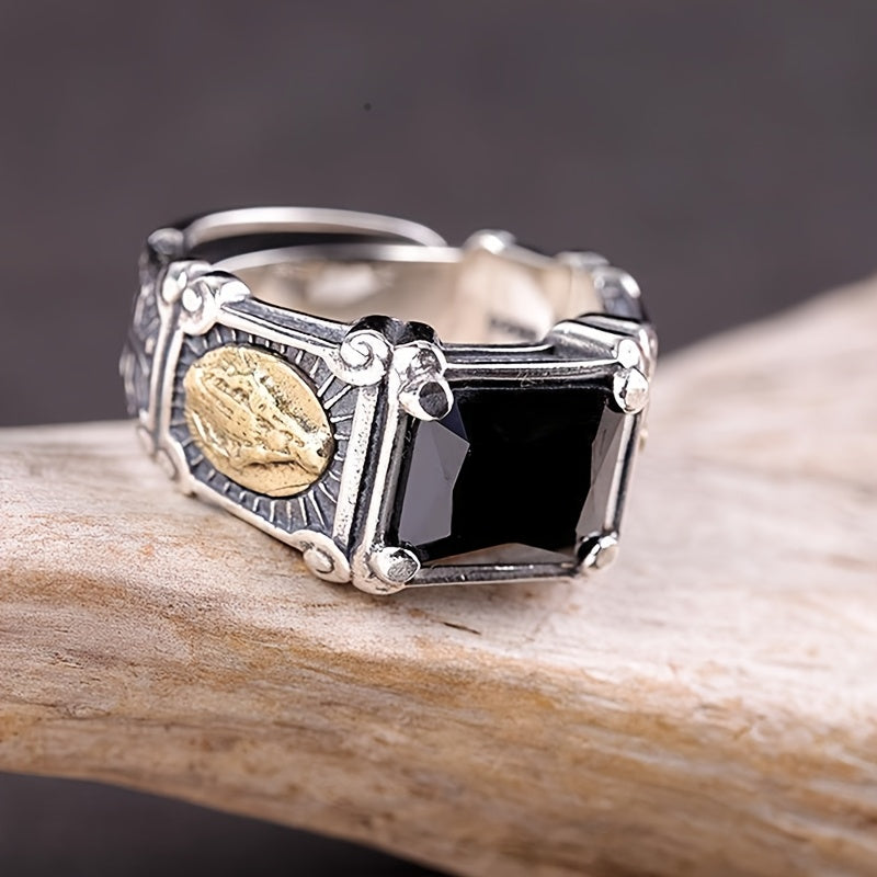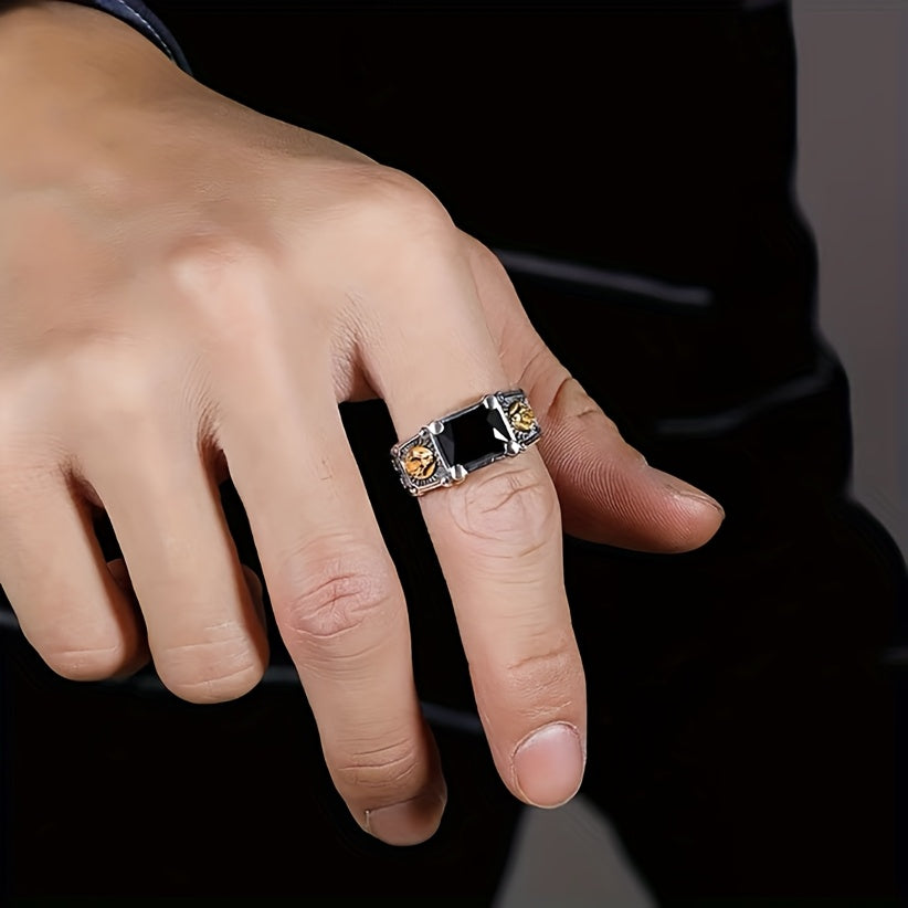 This vintage style ring features intricate detailing and synthetic cubic zirconia. It is a perfect accessory for those who love punk and hip hop fashion.