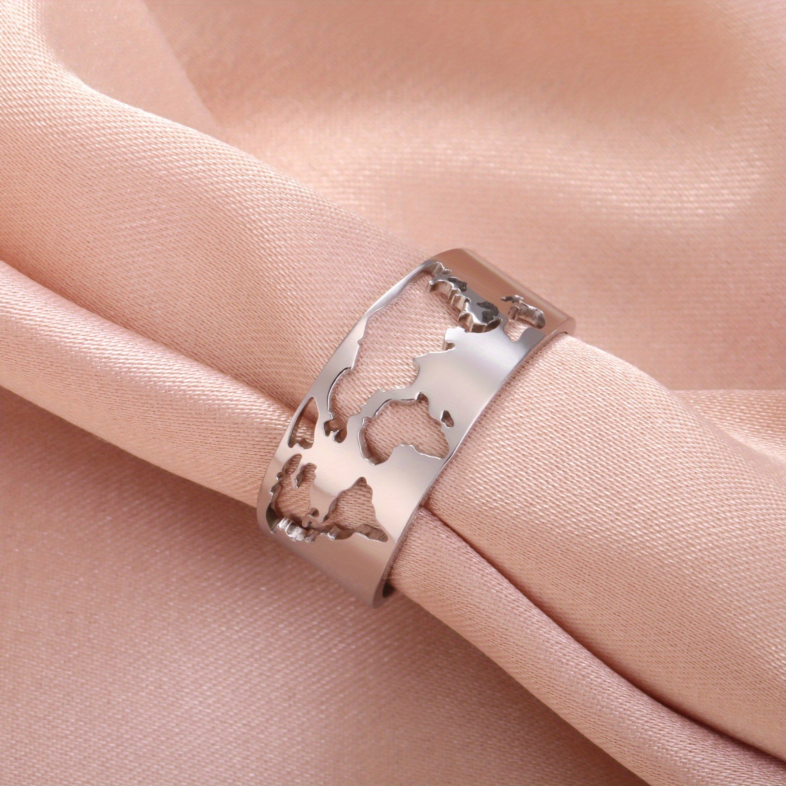 This adjustable ring with a world map design is perfect for travel-themed parties or as a unique gift. Made of high-quality stainless steel.