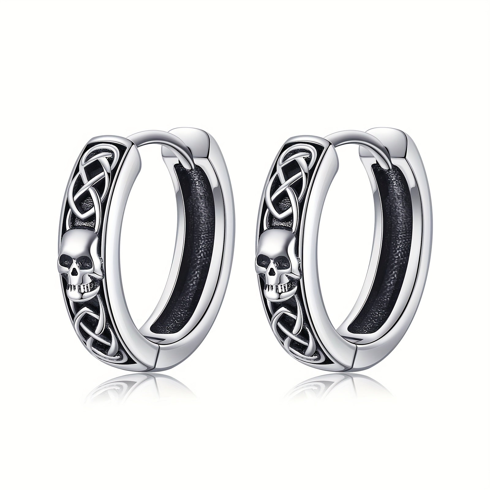 These Celtic skull earrings are crafted from 925 sterling silver, featuring a unique Viking design. Perfect for both men and women, these hoop earrings add a touch of mystique and style to any outfit.