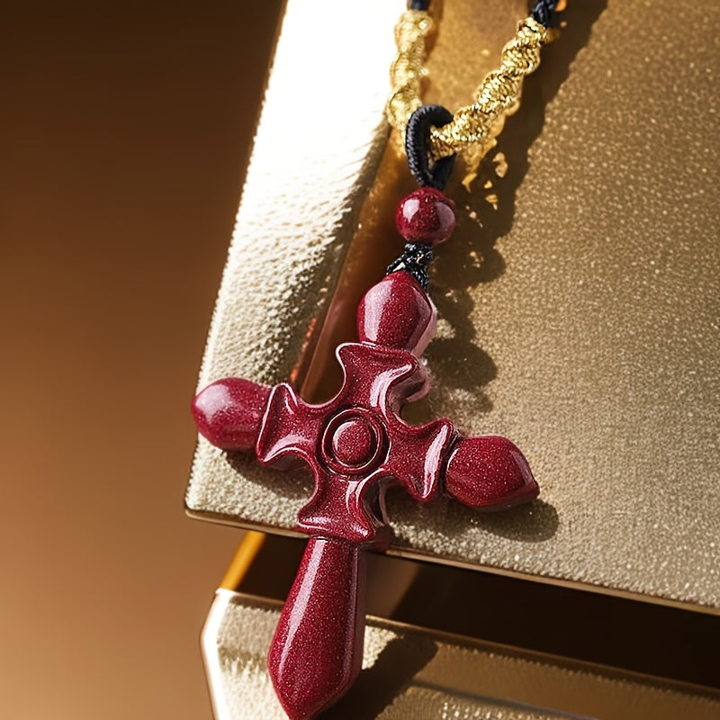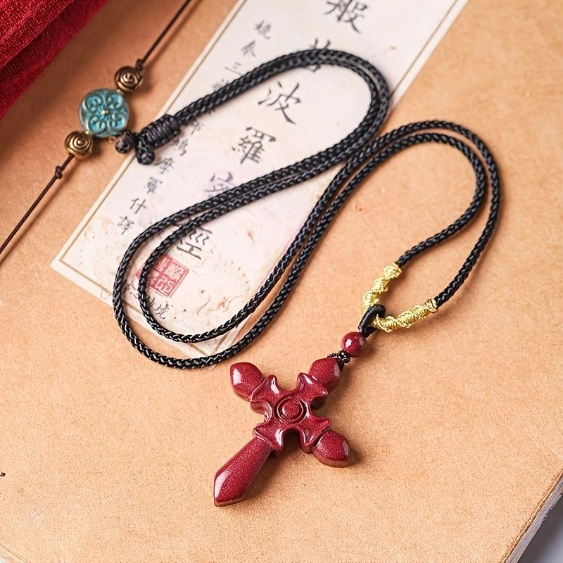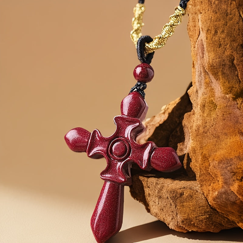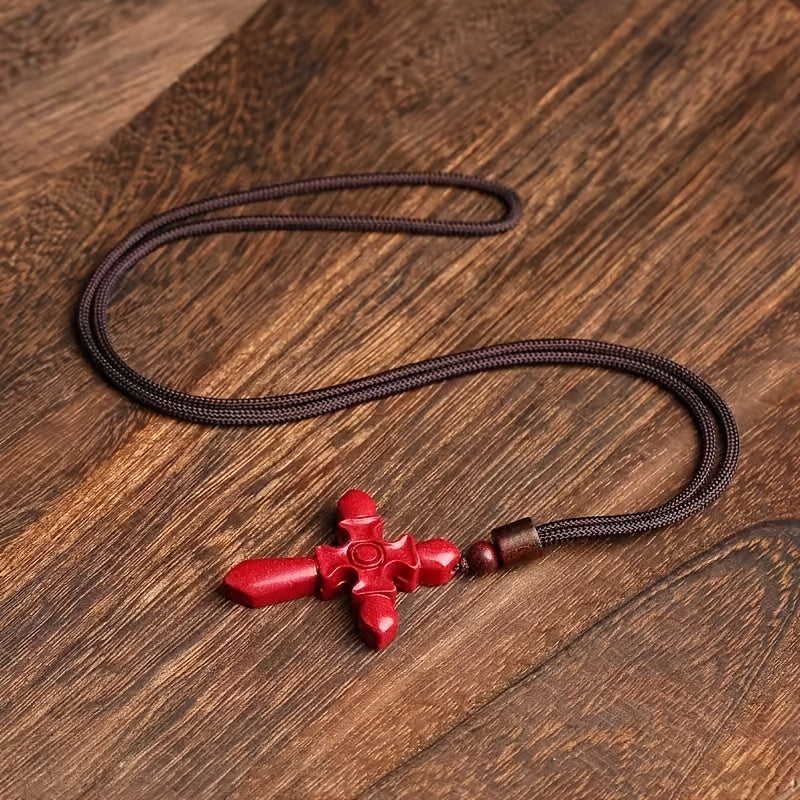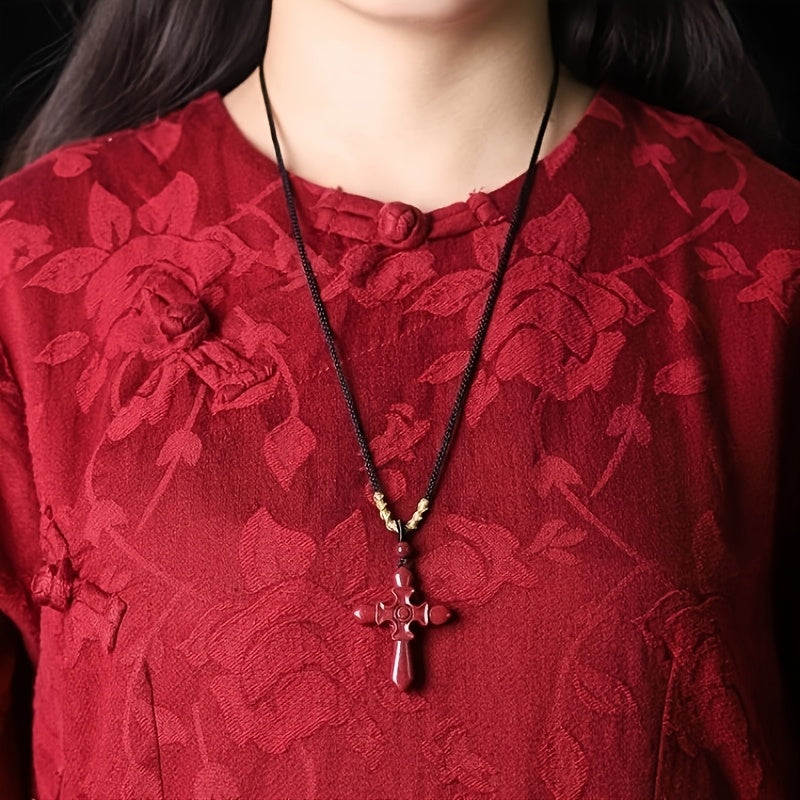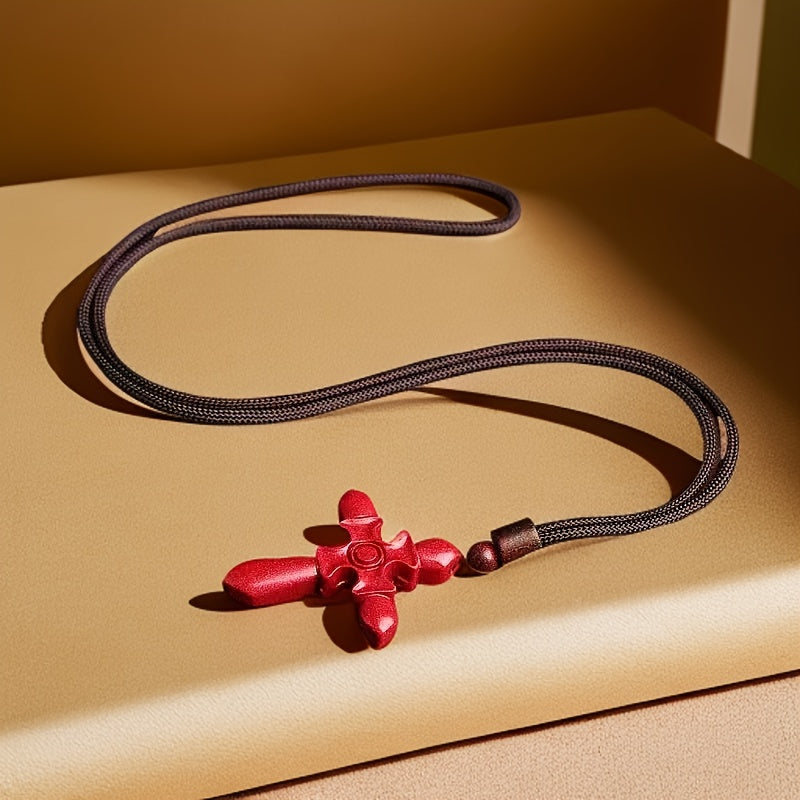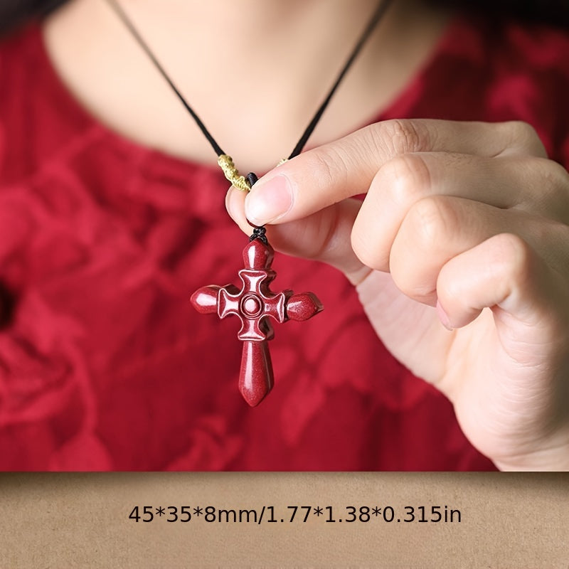 This glossy Cinnabar Cross Pendant Necklace is designed to offer protection and luck. It is an ideal gift for both men and women. The high red color adds a touch of elegance.