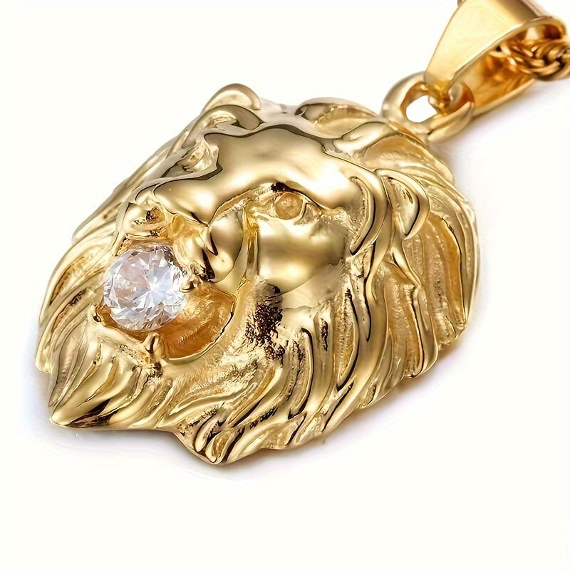 Embrace your wild side with this lion pendant necklace, perfect for rock and party wear. Made of high-quality synthetic zircon with a metal finish.