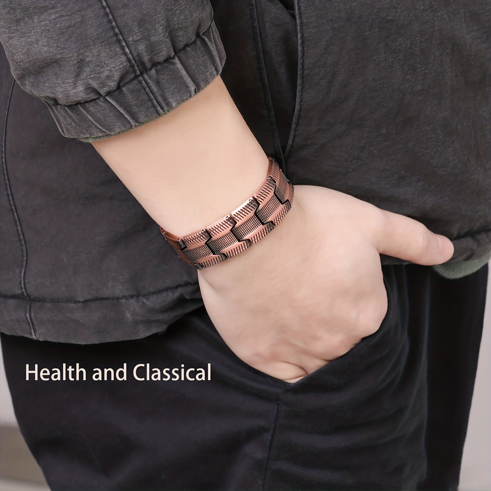 Stylish copper bracelet with 3 rows of powerful neodymium magnets for a magnetic therapy effect. Perfect Christmas gift for men.