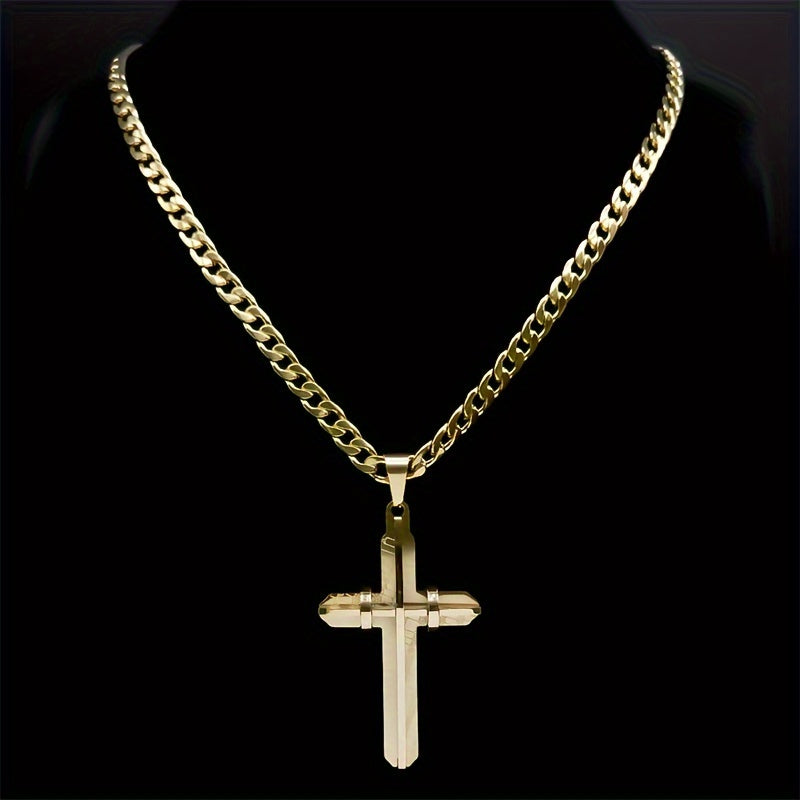 This classic stainless steel necklace features a creative cross pendant, making it a stylish accessory for men.