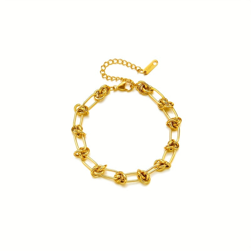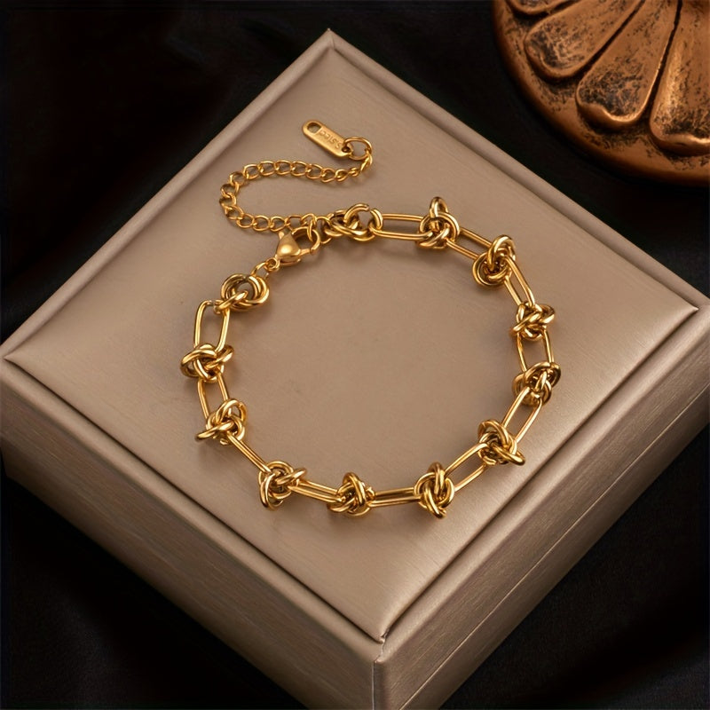 Add a touch of retro style to your outfit with these stainless steel golden plated latch chain bracelets. Perfect for parties or as a stylish gift.