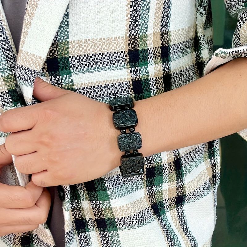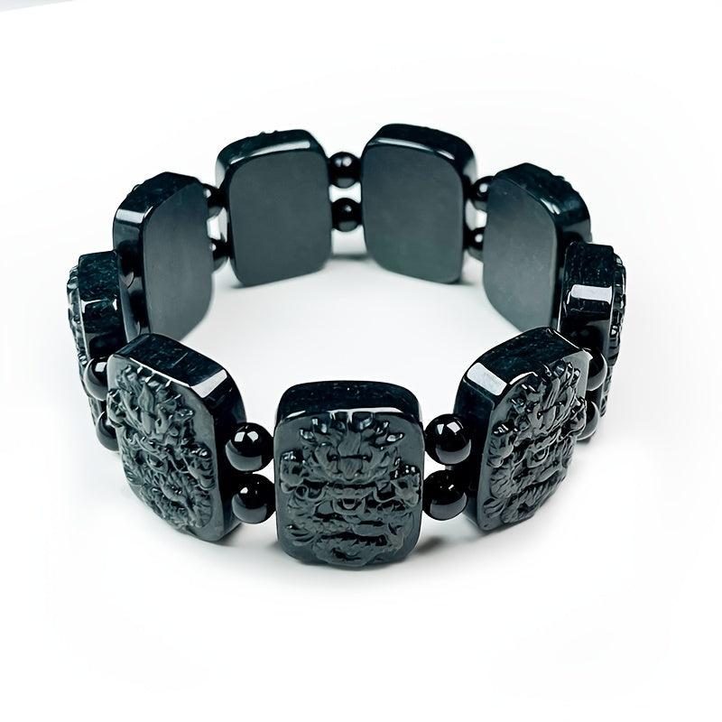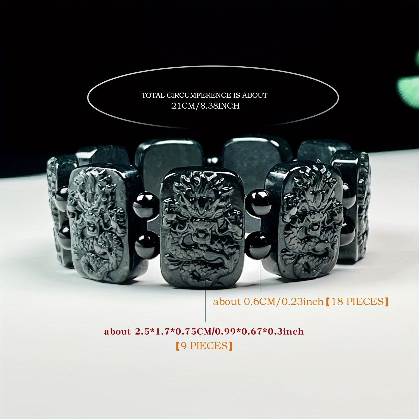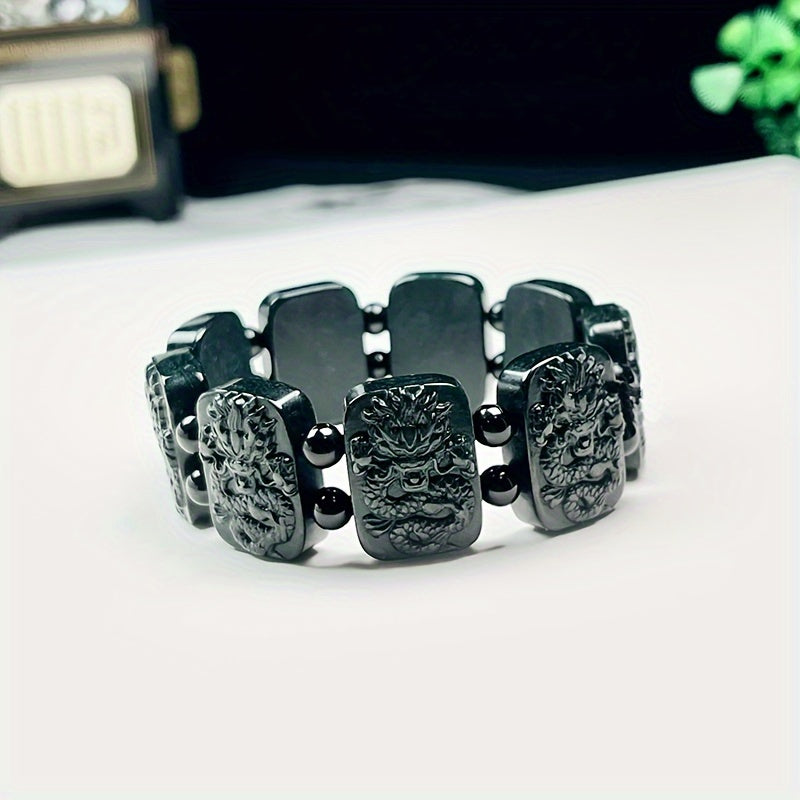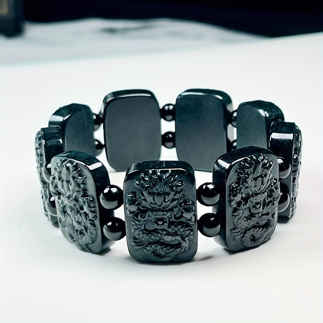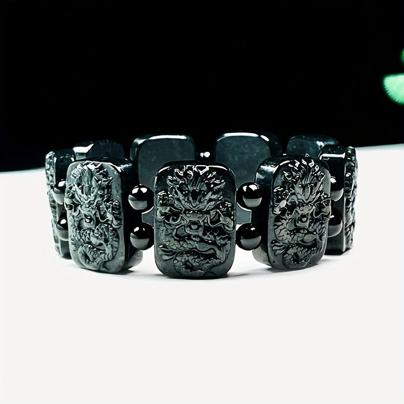 This dark green natural stone bracelet features a hand-carved dragon design, ideal for men who appreciate unique accessories.