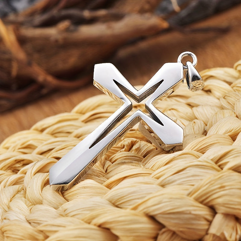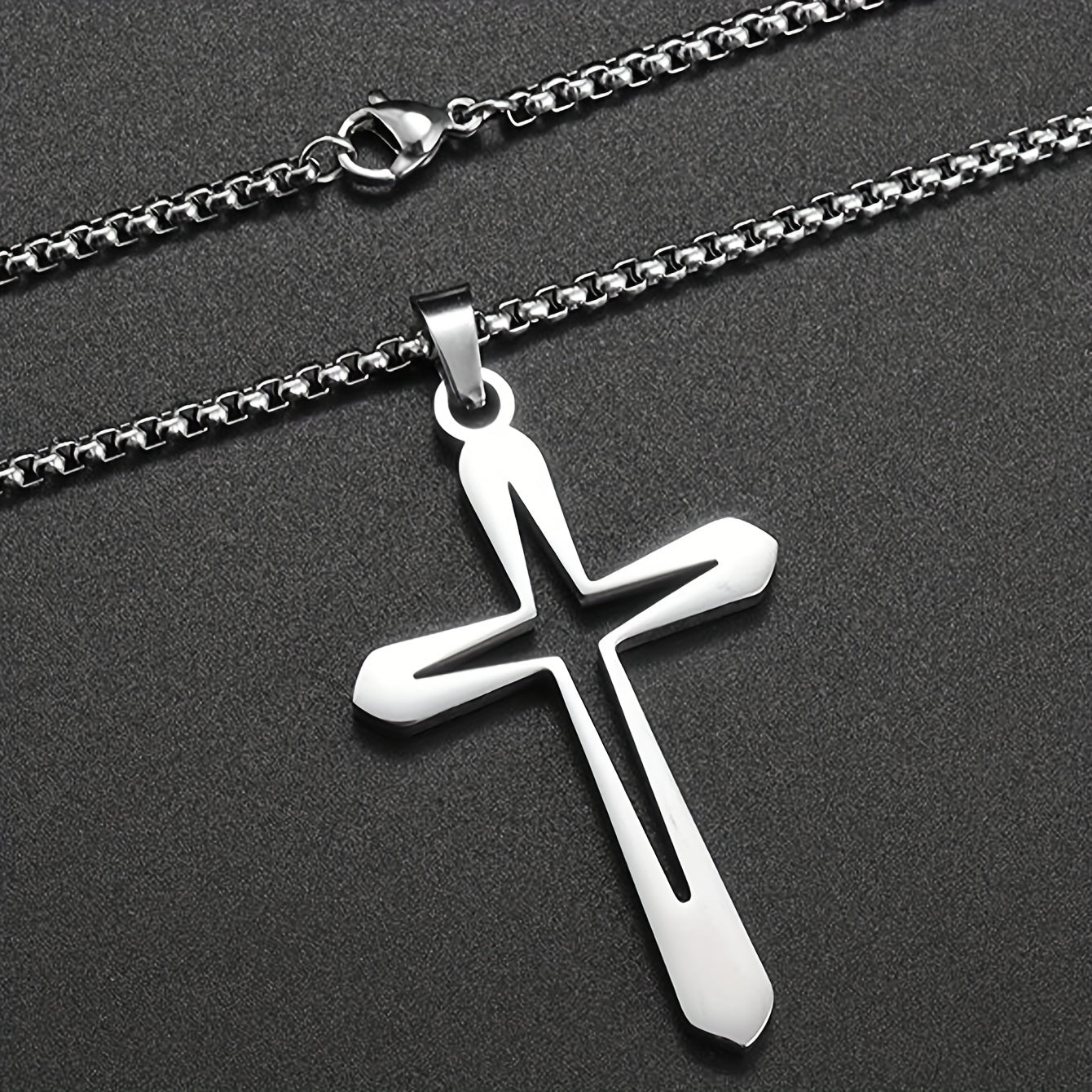 Men's religious Christian amulet jewelry featuring a hollow cross pendant on a stainless steel necklace. Perfect for a hip-hop style look.