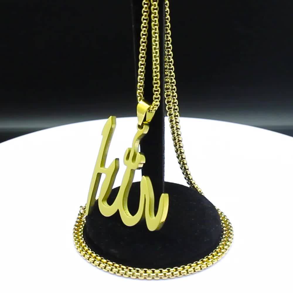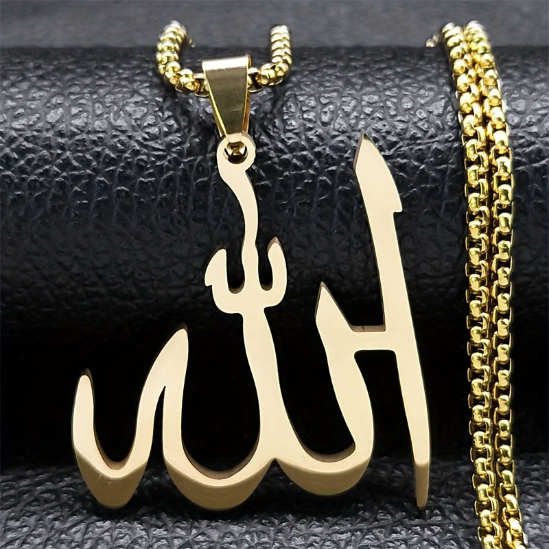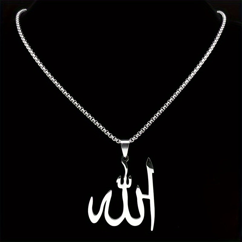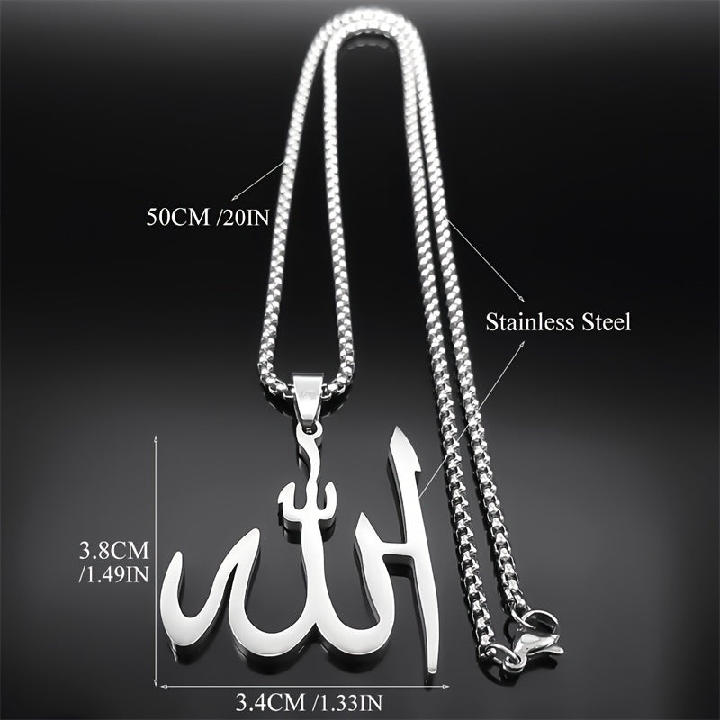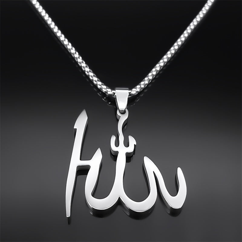 Stainless Steel Necklace Pendant with the name of the Islamic Arab God, a protective amulet jewelry suitable for Islamic Muslims. This pendant represents faith and protection.