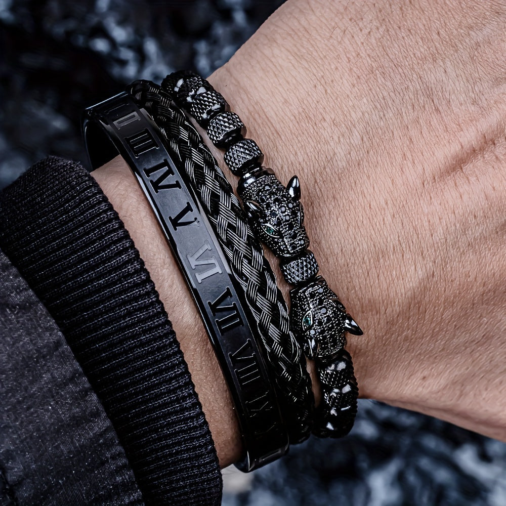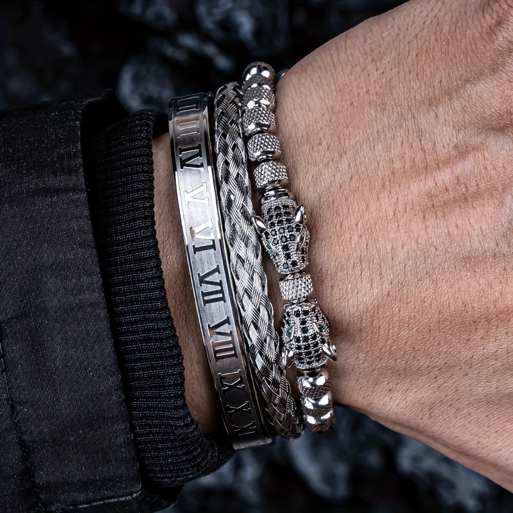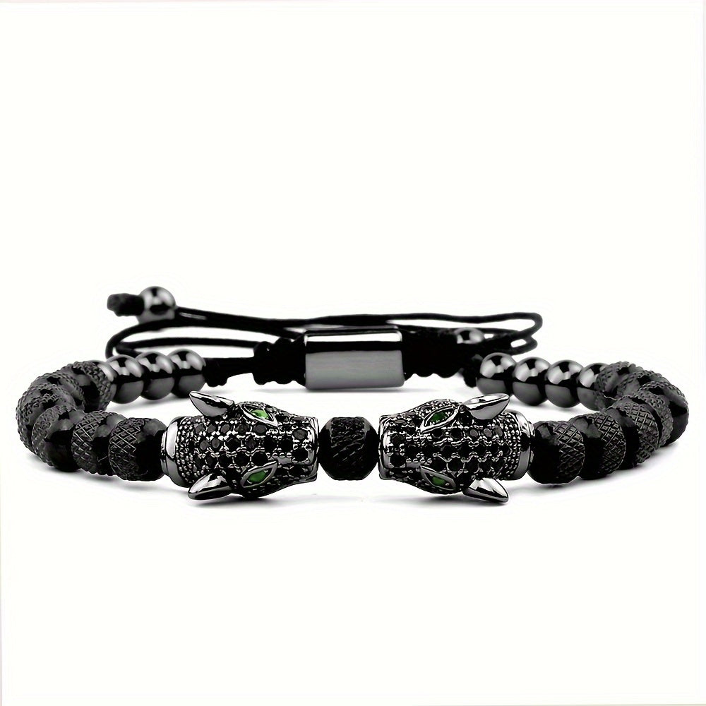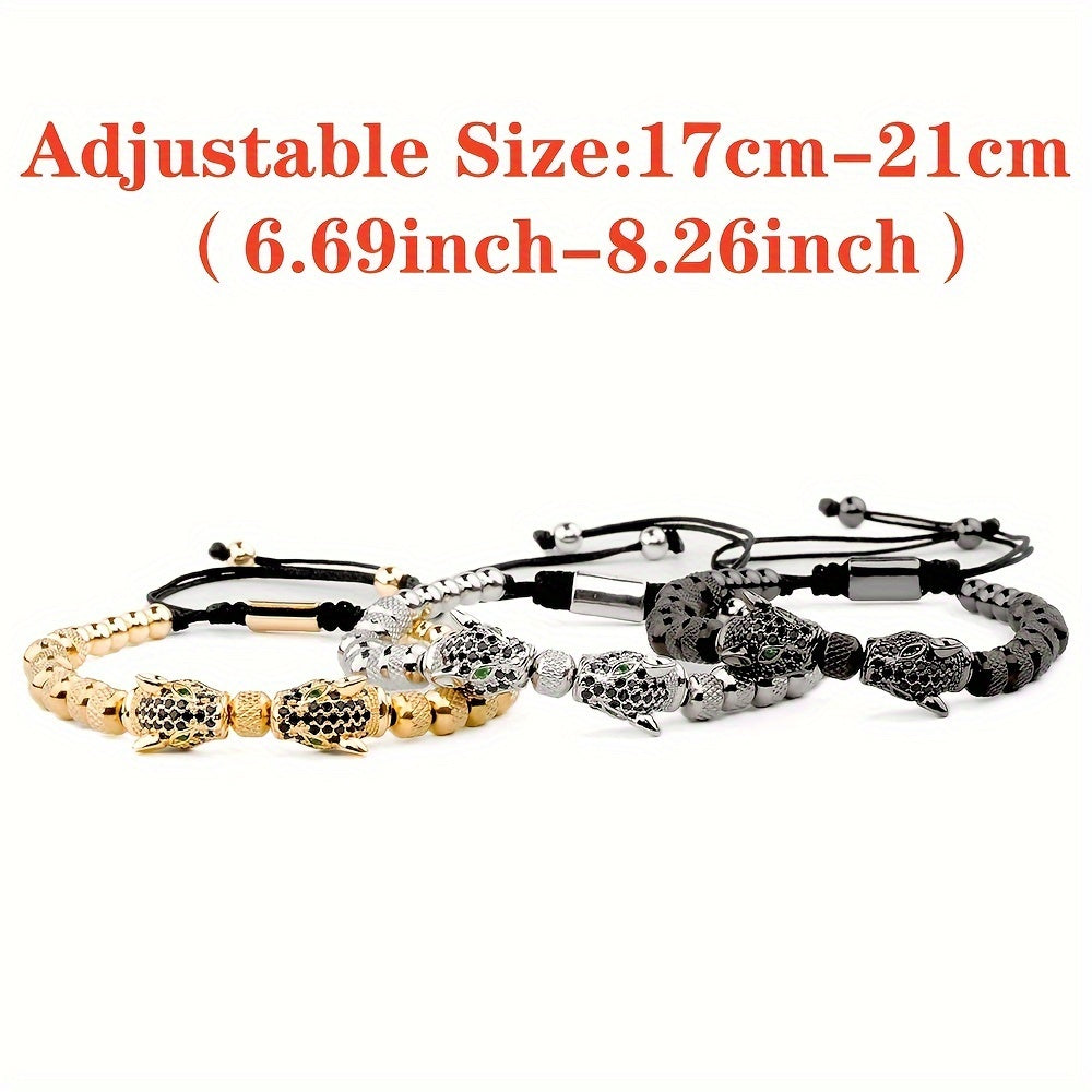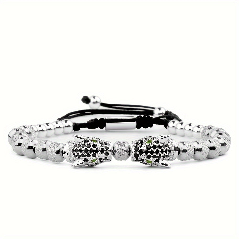 This stylish bracelet features a leopard head design and stainless steel beads. It is adjustable in size and suitable for both men and women. A perfect gift for any occasion.